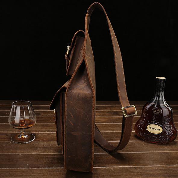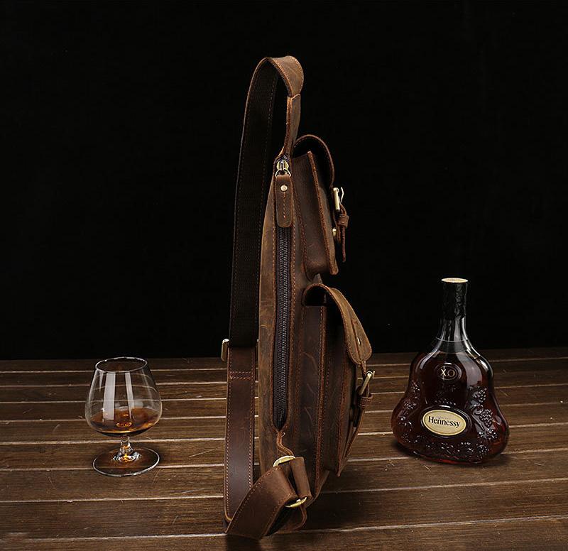 Style: Leather Mens Cool Sling Bag Crossbody Bag Chest Bag for men
