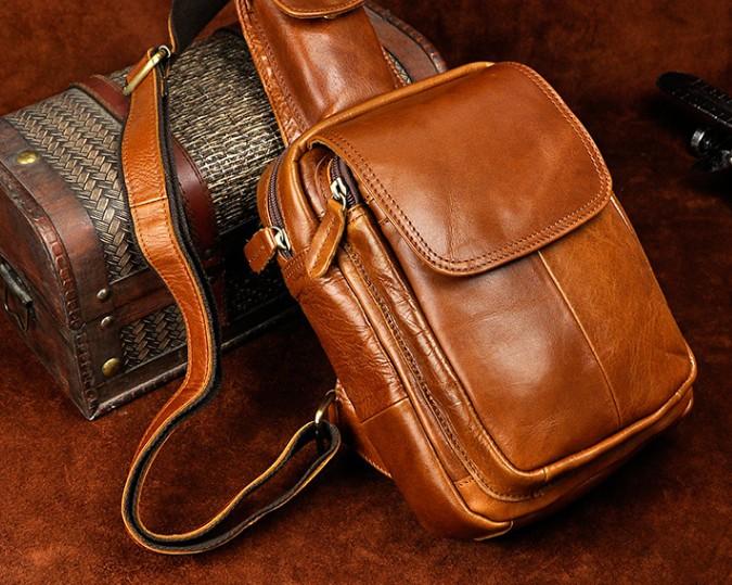 Design: Vintage Leather Mens Sling Shoulder Bag Sling Bag Chest Bag Sling Backpack for men