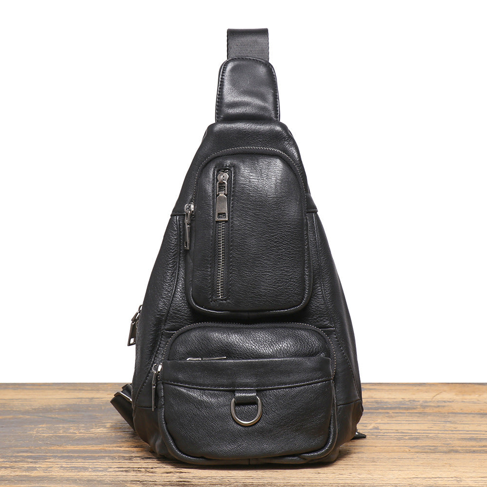 Design: Black Leather Sling Bag for Men Crossbody Leather Sling Bag Leather Sling Crossbody Bag