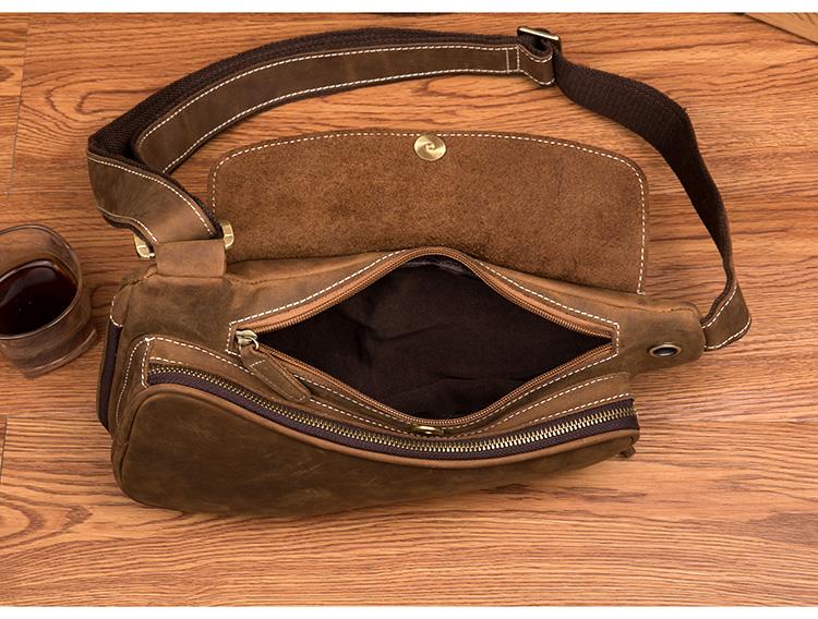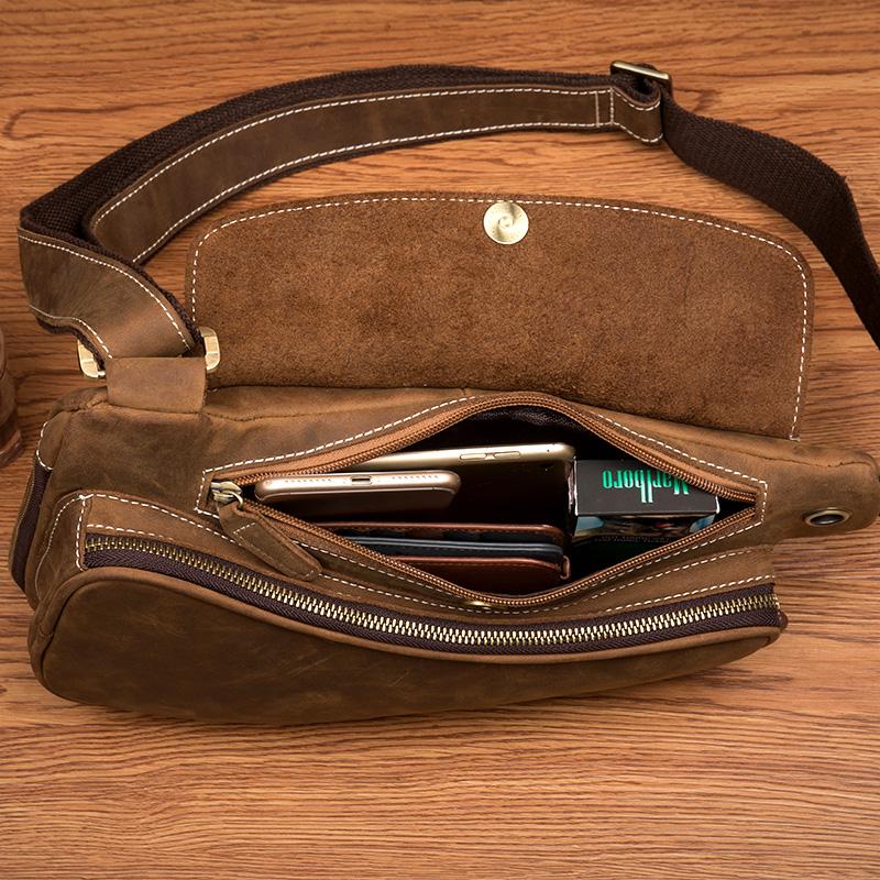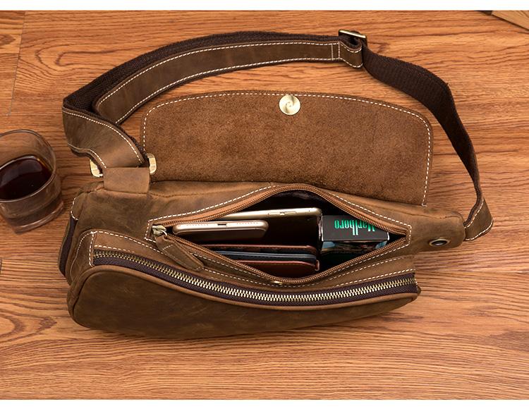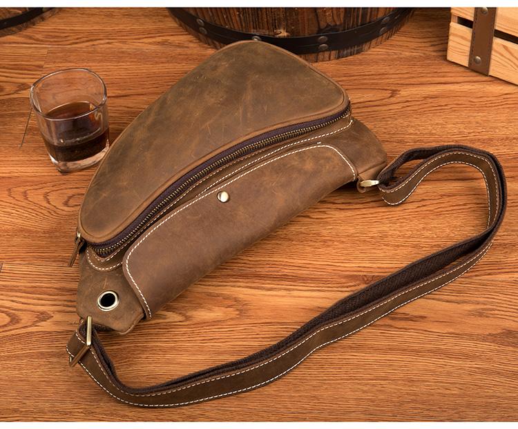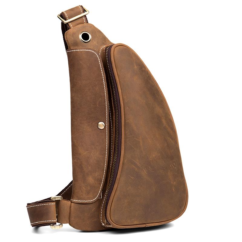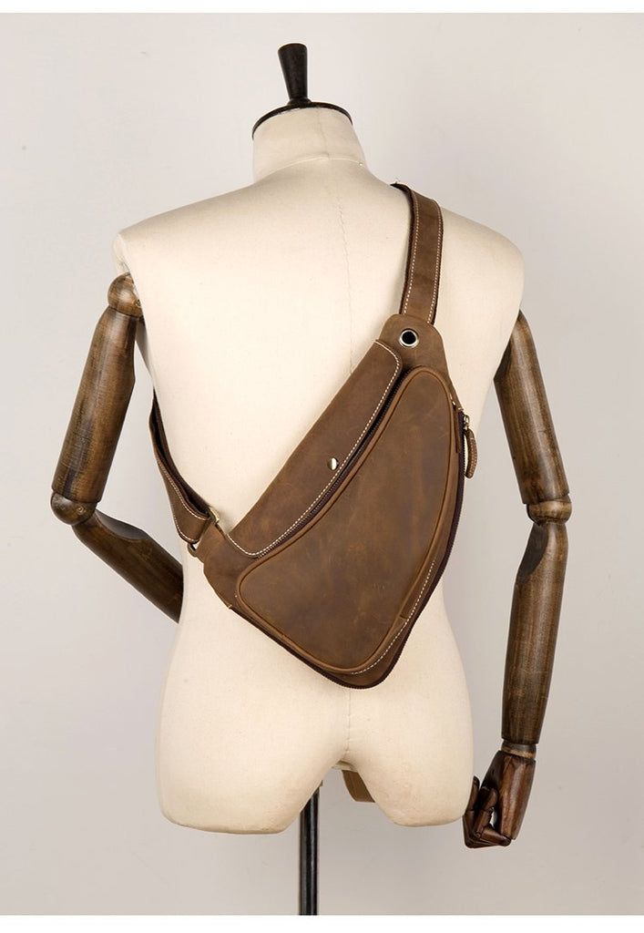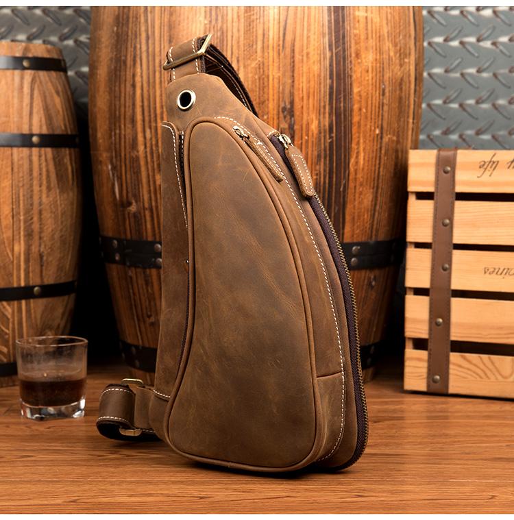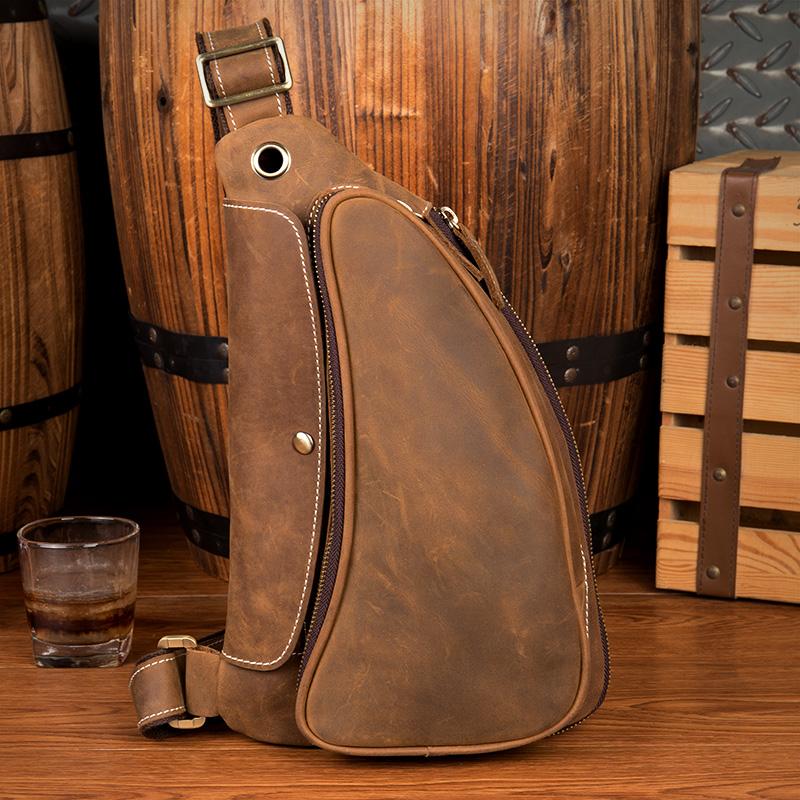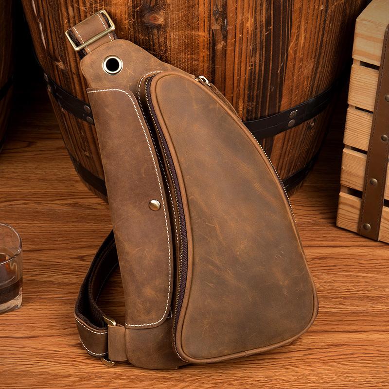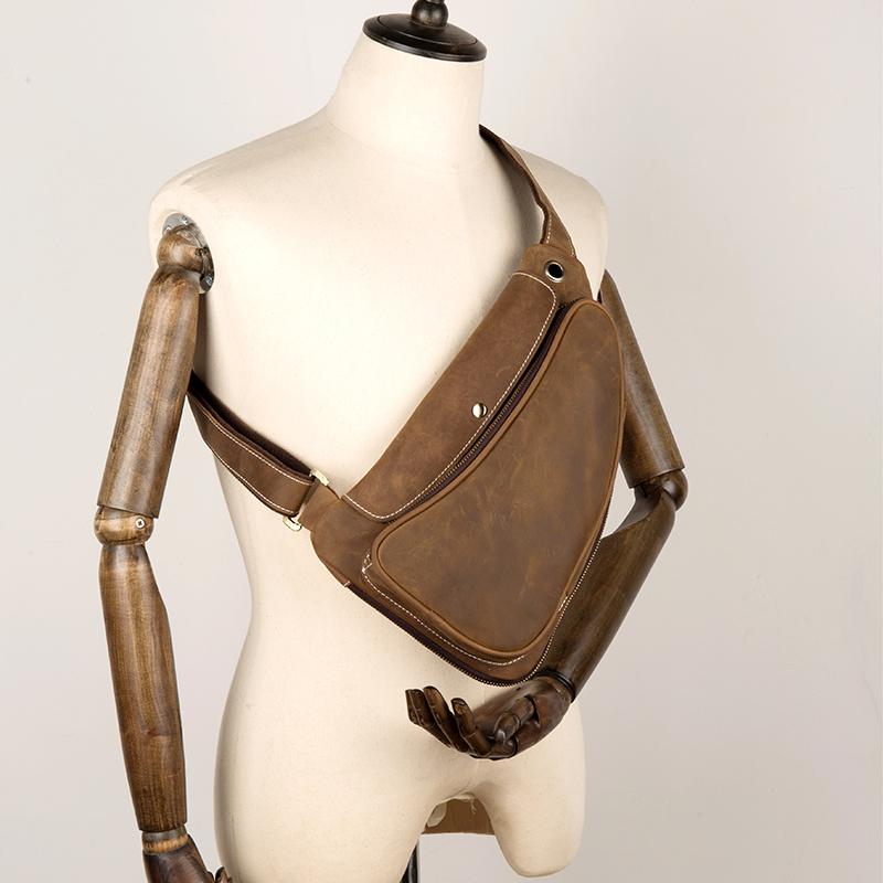 Cool Brown Leather Mens Sling Pack Sling Bags Crossbody Pack Chest Bag for men