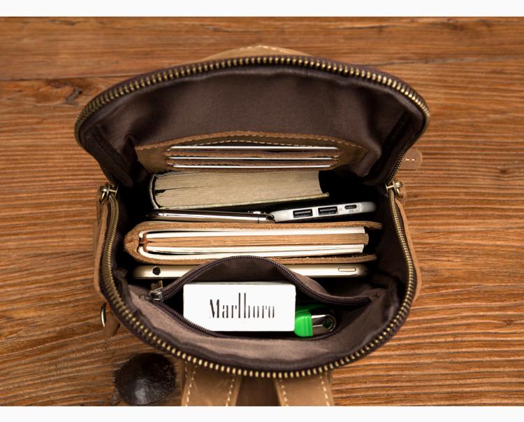 Style: Light Brown Leather Mens Cool 10 inches Sling Bag Crossbody Bag Chest Bag for men