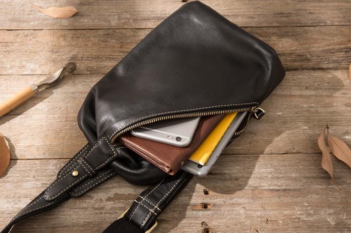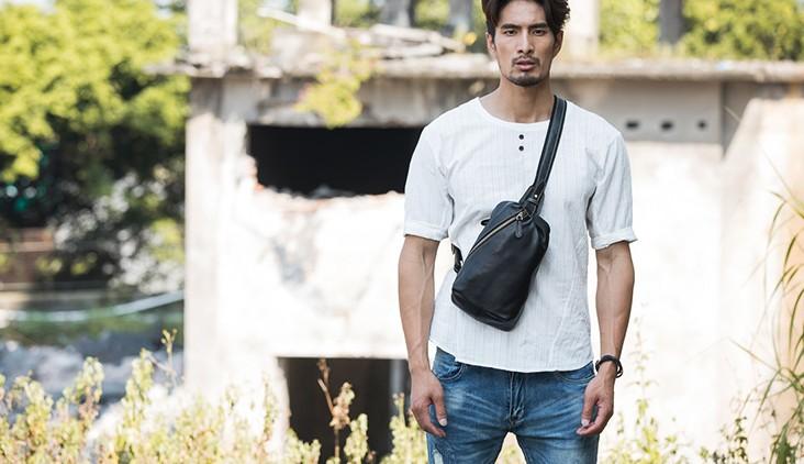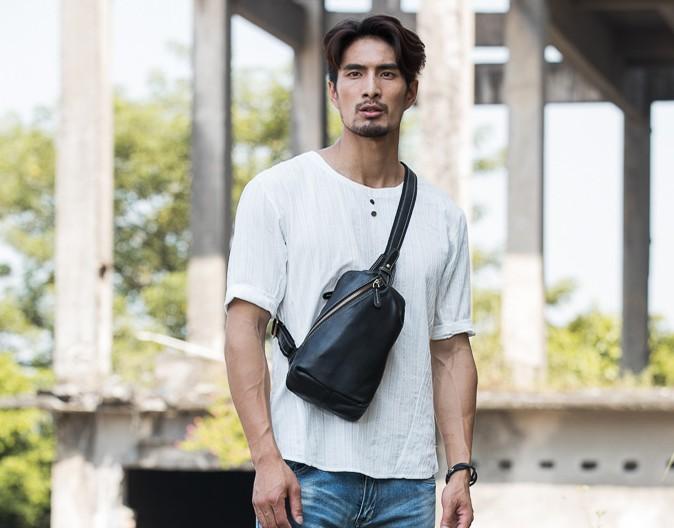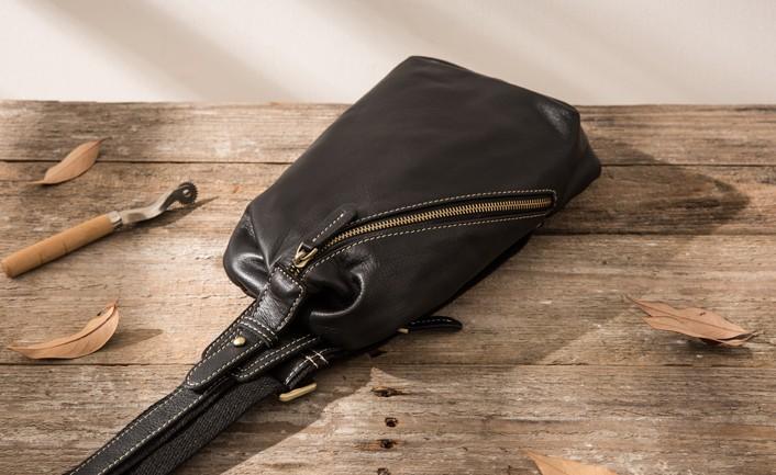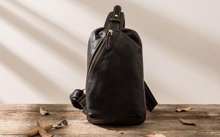 Style: Black Leather Mens Sling Bag Sling Shoulder Bag Sling Backpack for men