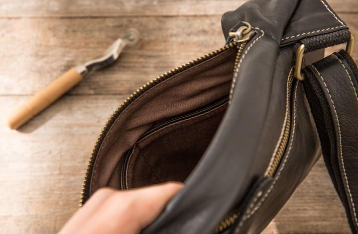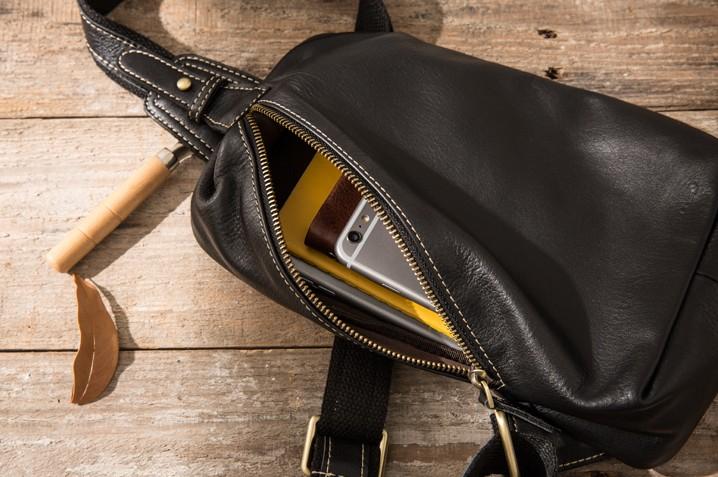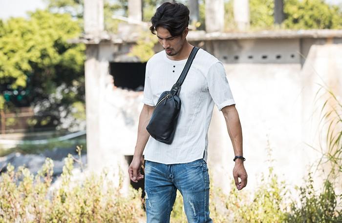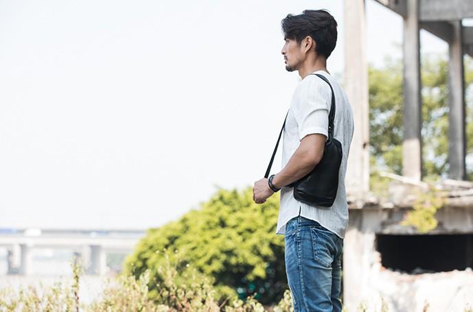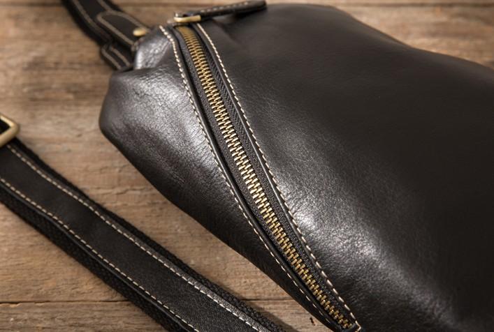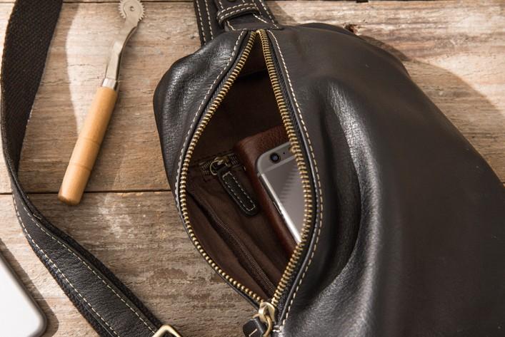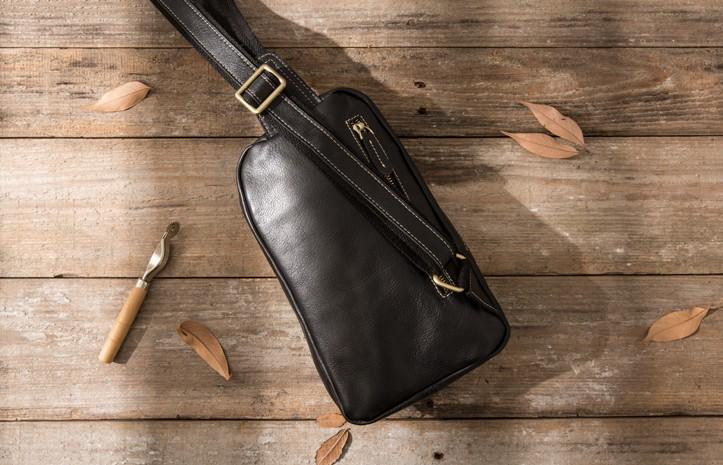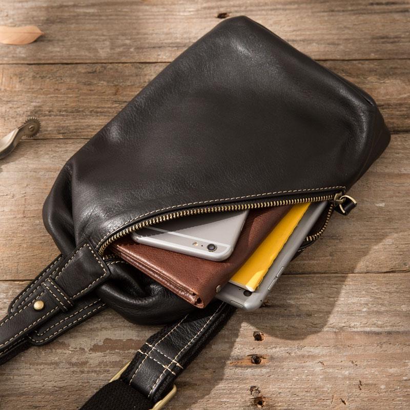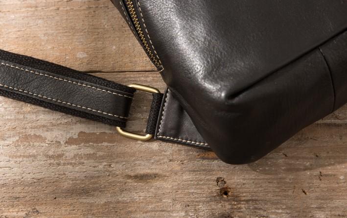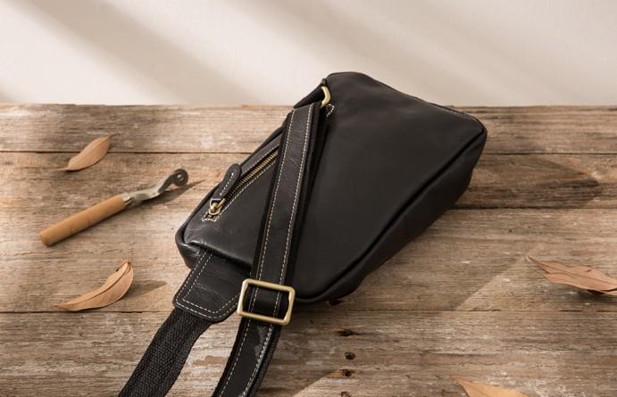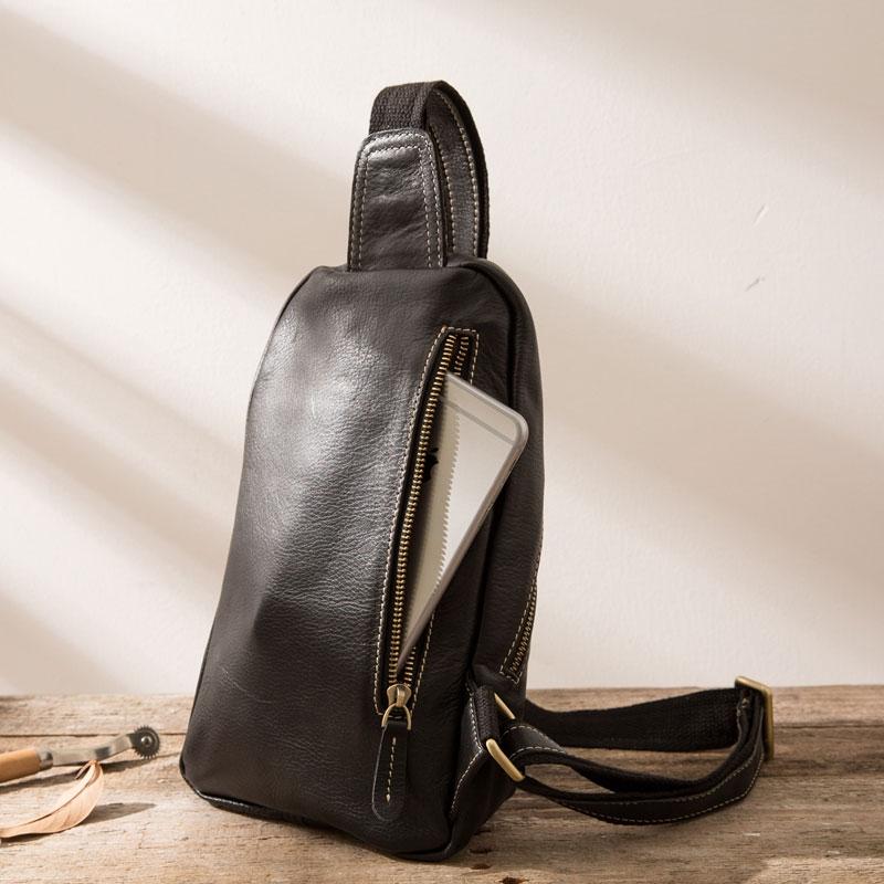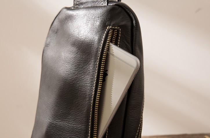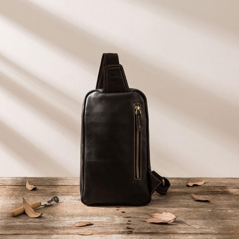 Design: Black Leather Mens Sling Bag Sling Shoulder Bag Sling Backpack for men