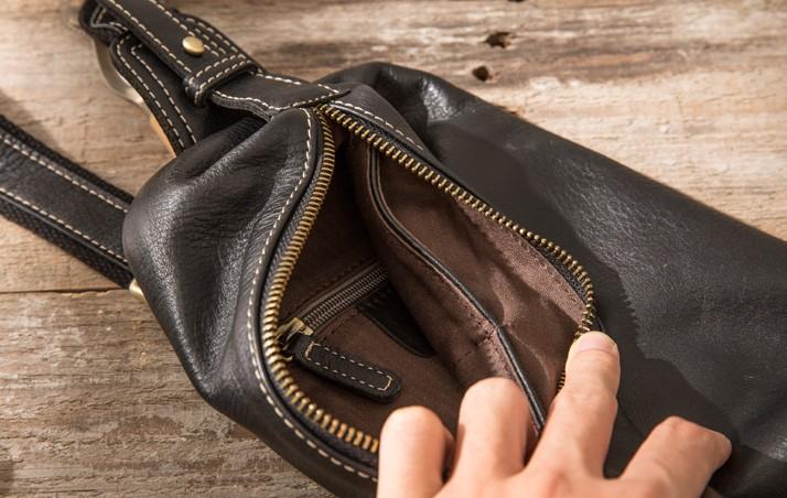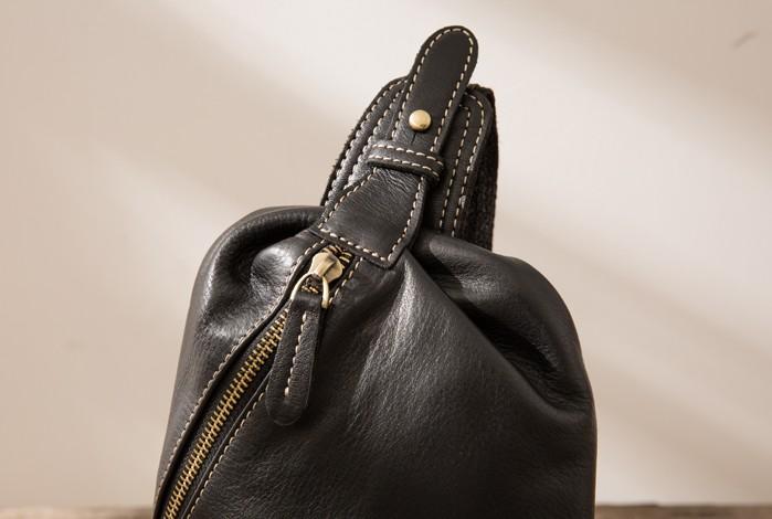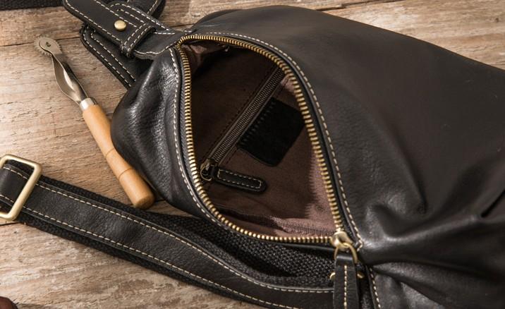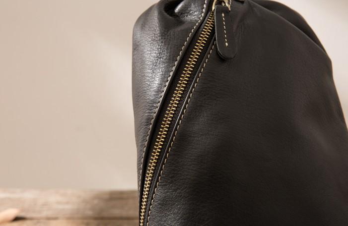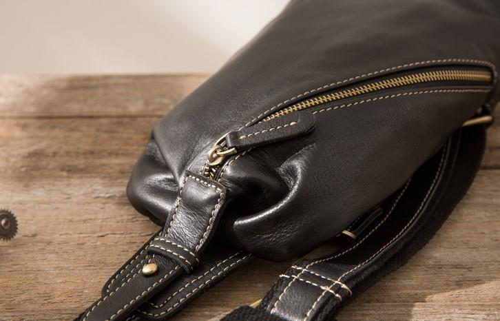 Mens Black Leather Sling Bag Sling Shoulder Bag Sling Backpack for men