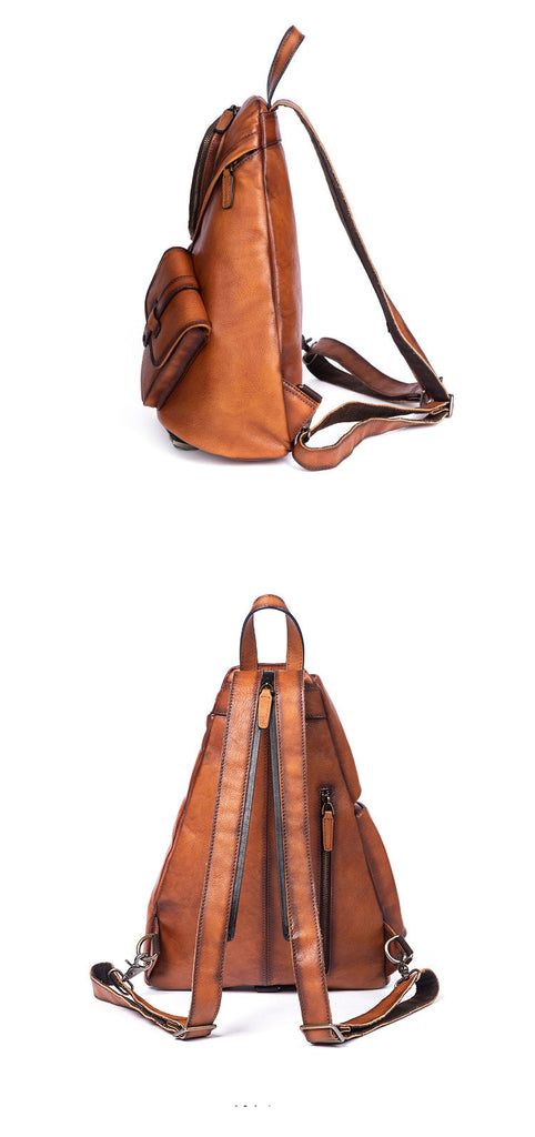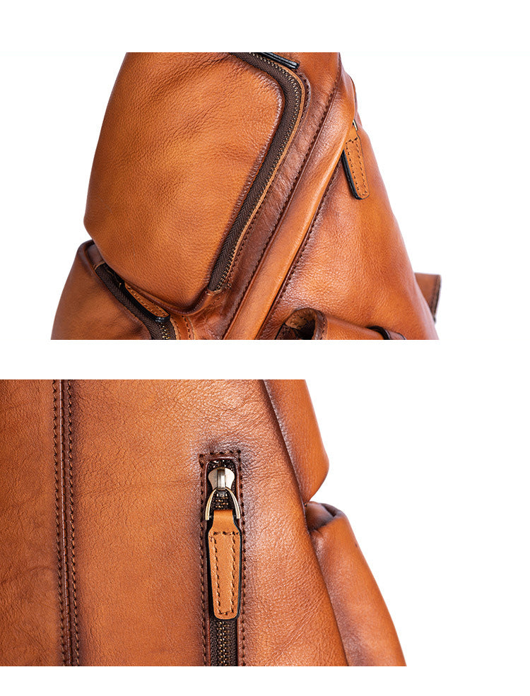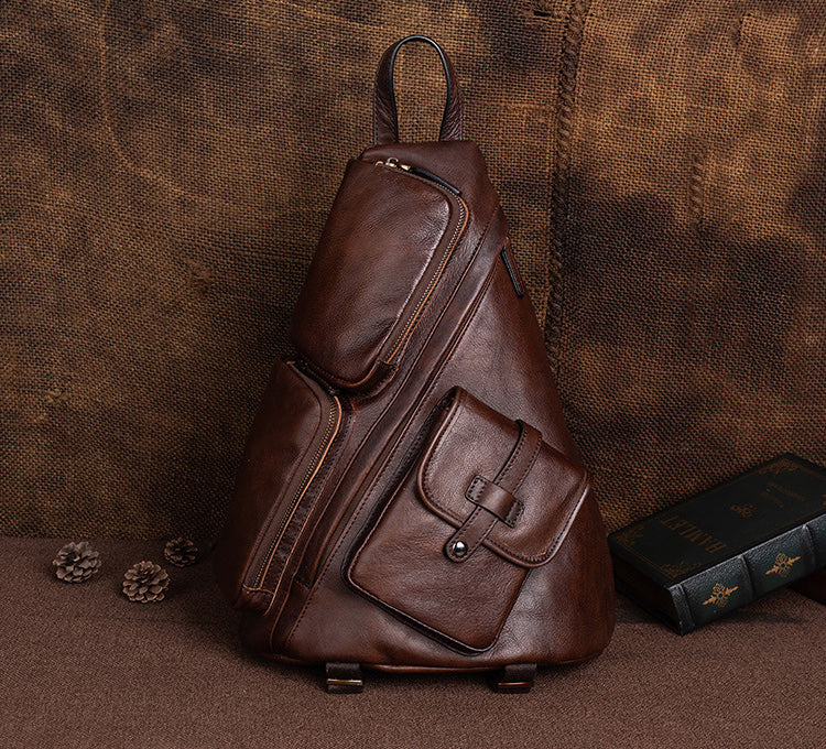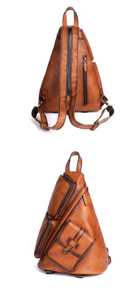 Design: Cool Men's Brown Leather Sling Bag Large Convertible Backpacks Sling Crossbody Pack For Men