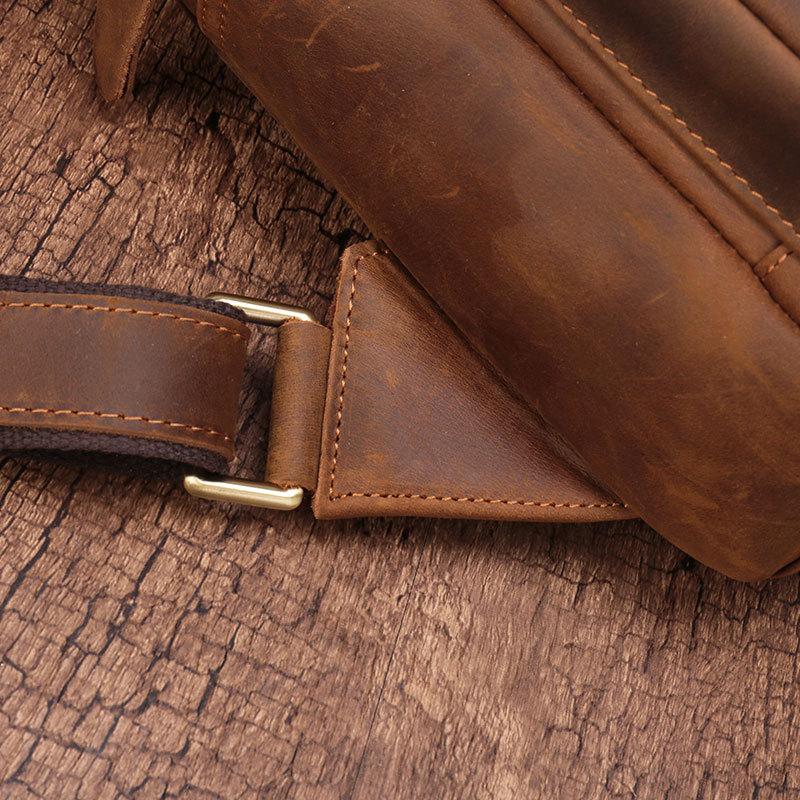 Vintage Brown Leather Men's Sling Bags Chest Bag One Shoulder Backpack For Men