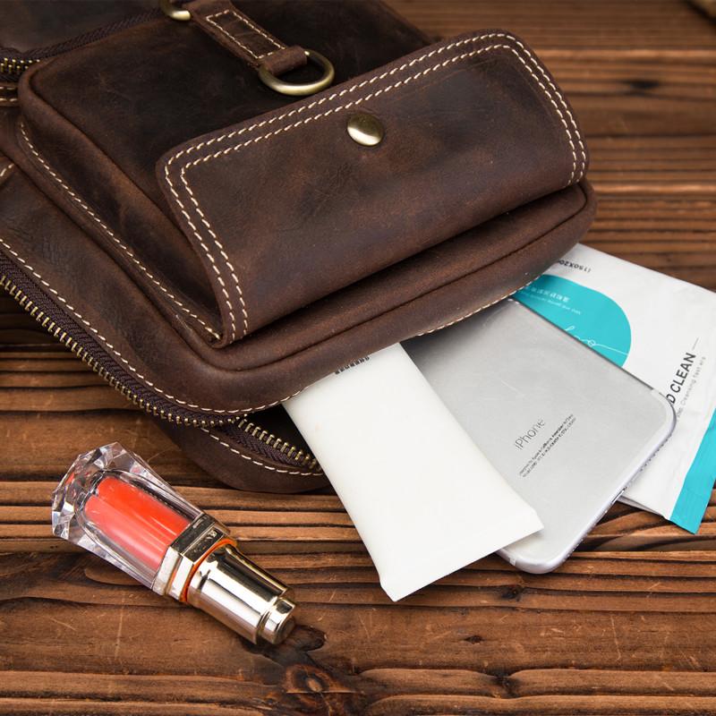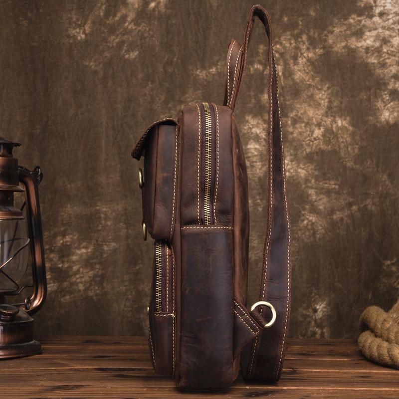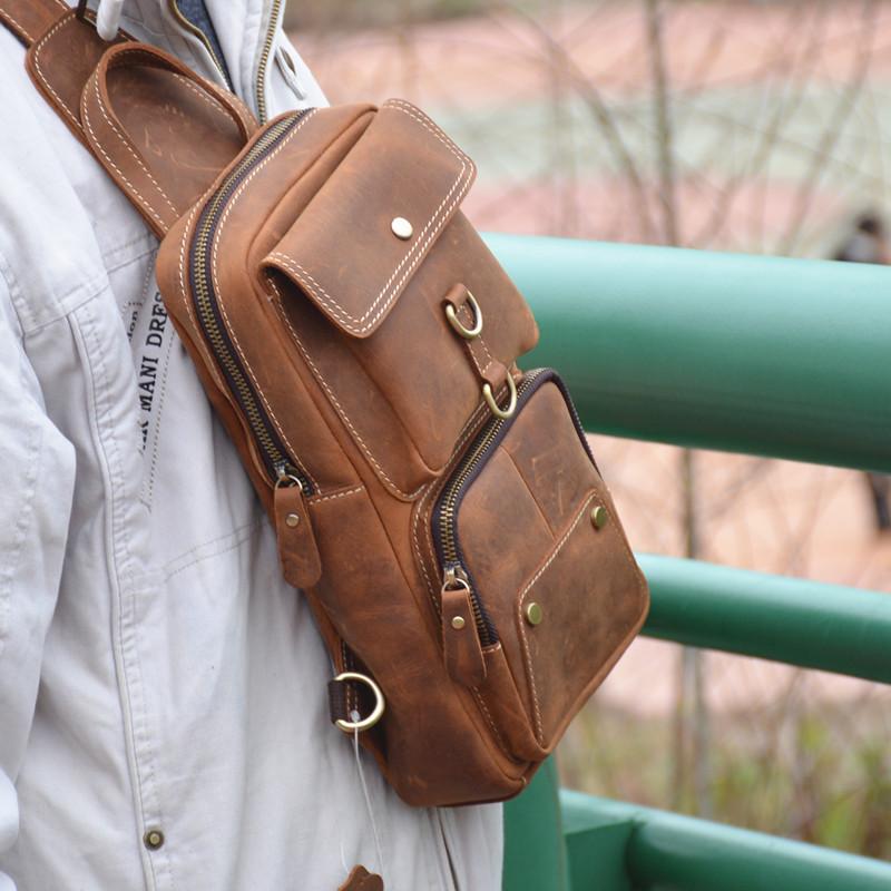 Design: Cool Brown Leather Men's Sling Bag Chest Bag Brown One Shoulder Backpack For Men