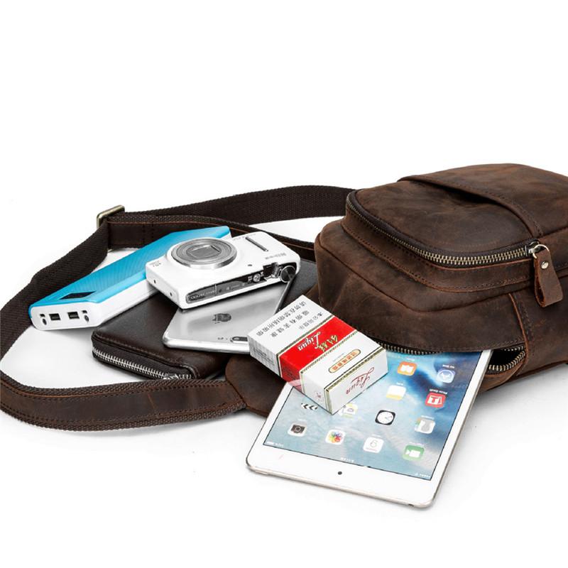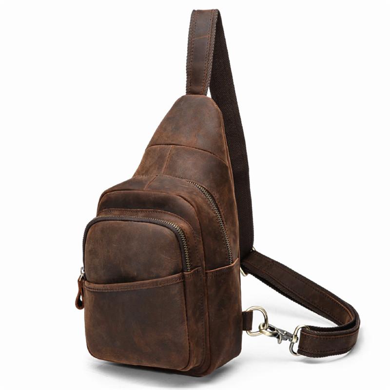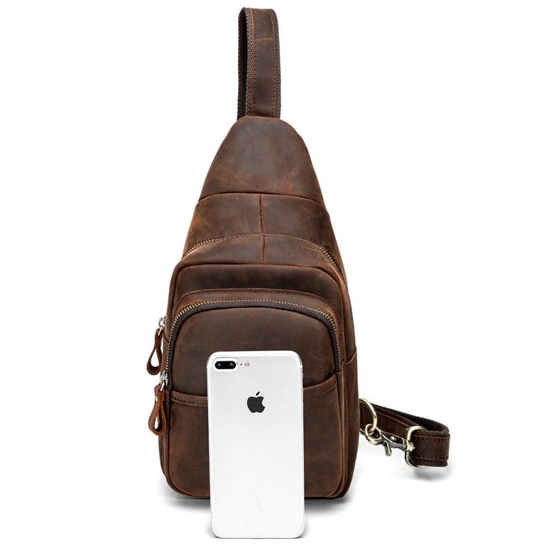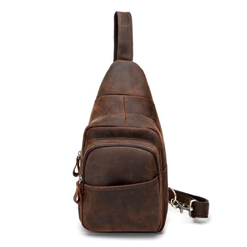 Style: BRed Brown Cool LEATHER MENS 8 inches Sling Bag One Shoulder Backpack Brown Chest Bag For Men