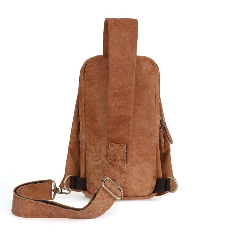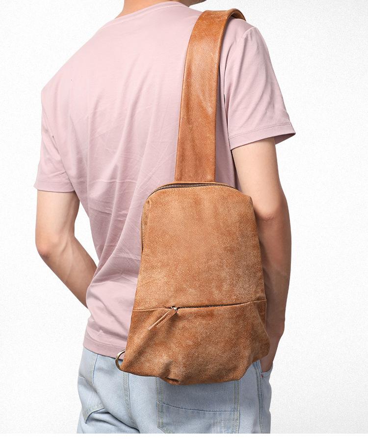 Style: Cool Brown Leather Mens Sling Bag Sling Shoulder Bag Chest Bag Sling Crossbody Bag For Men