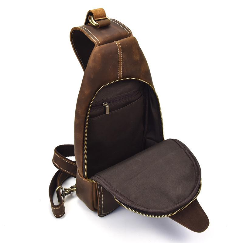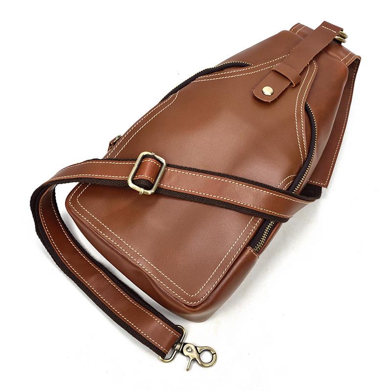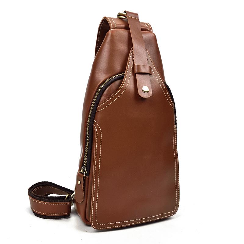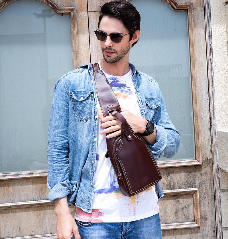 Design: Retro Mens Leather One Shoulder Backpack Chest Bag Sling Bags Crossbody Bag For Men