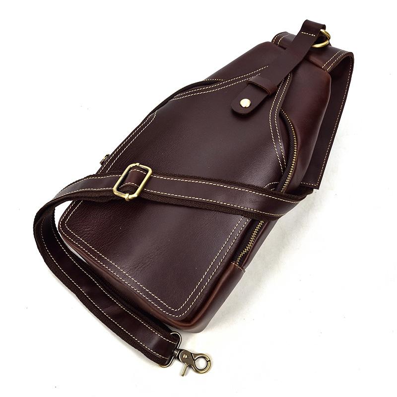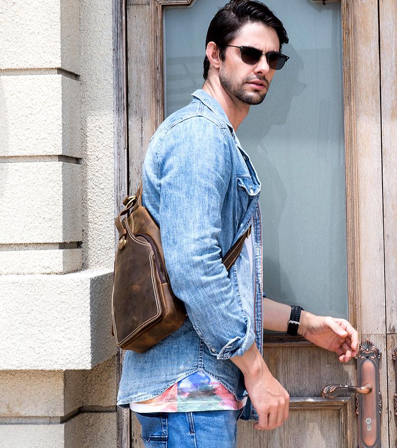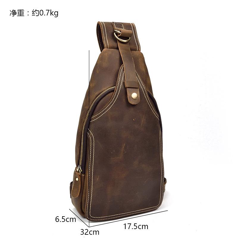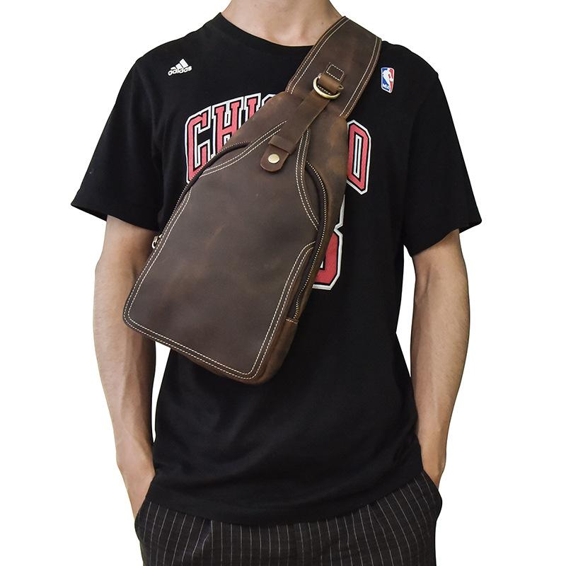 Style: Retro Mens Leather One Shoulder Backpack Chest Bag Sling Bags Crossbody Bag For Men