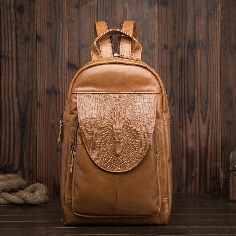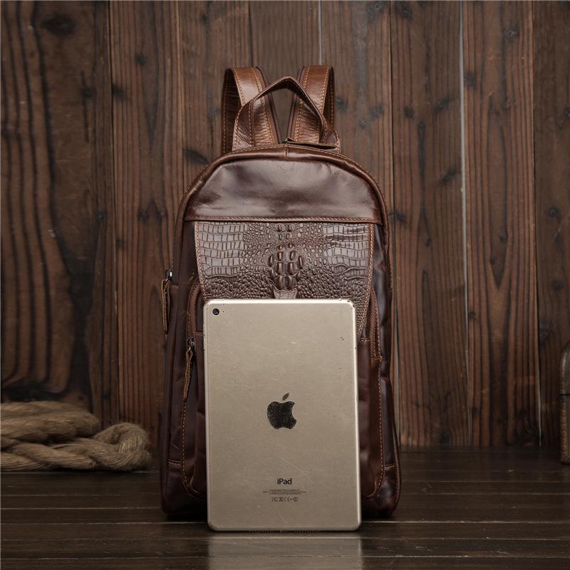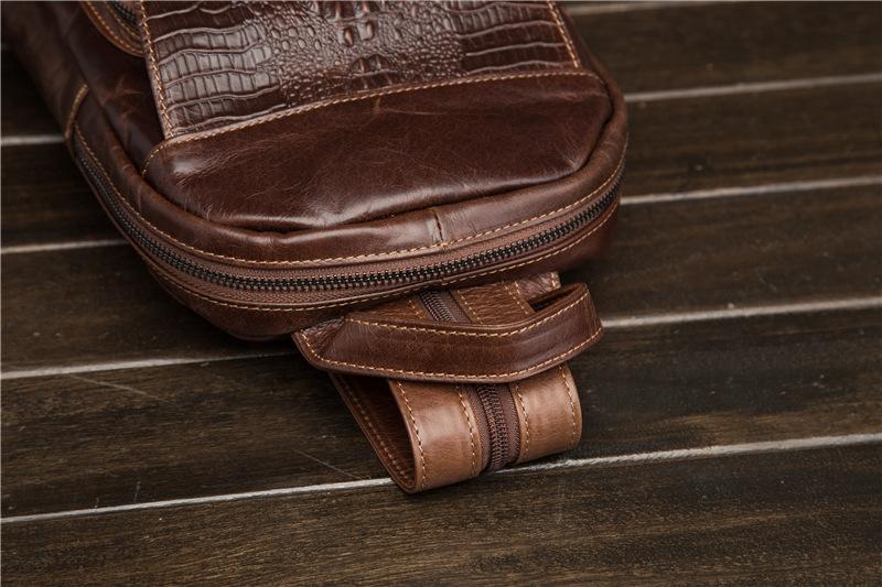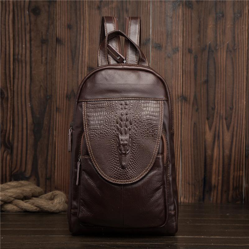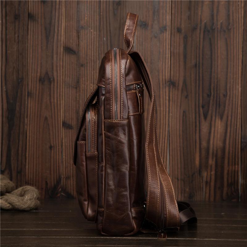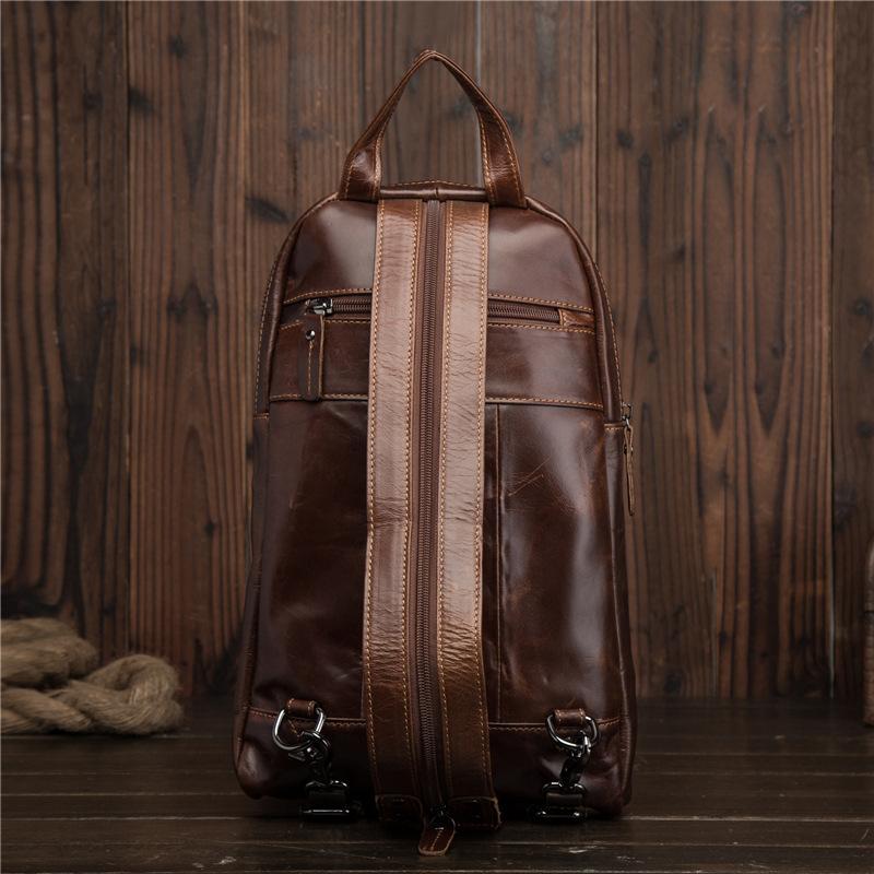 Design: Cool Brown Leather Men's Sling Bag One Shoulder Backpack Black Sling Crossbody Pack For Men