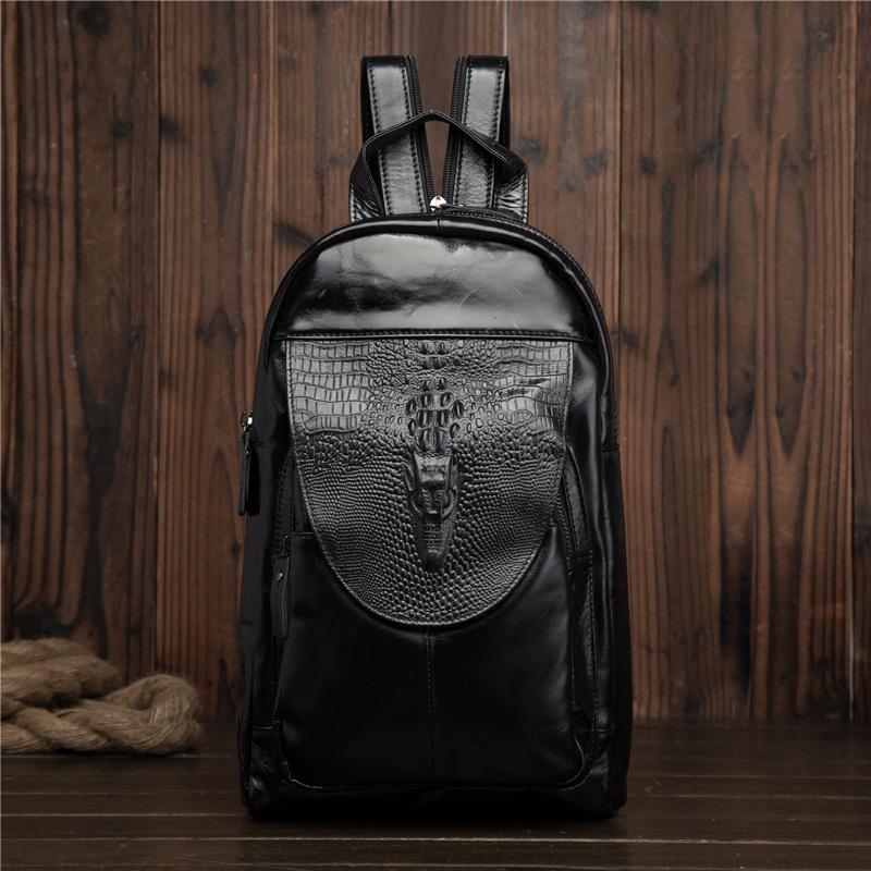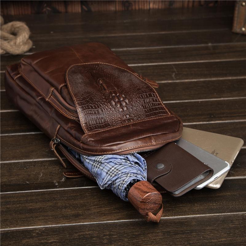 Design: Cool Brown Leather Men's Sling Bag One Shoulder Backpack Black Sling Crossbody Pack For MenOverview: