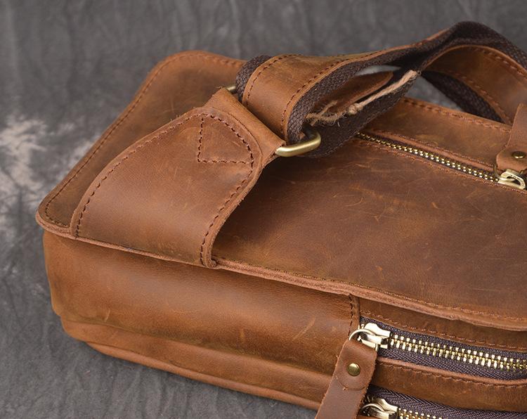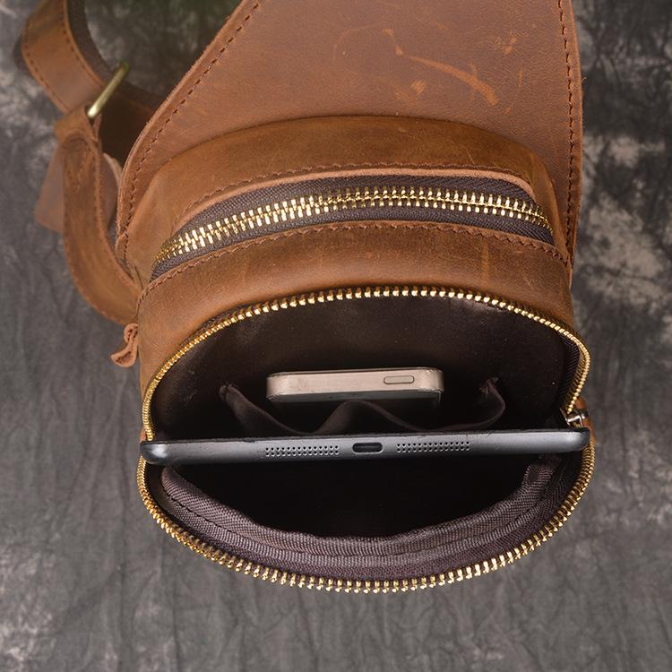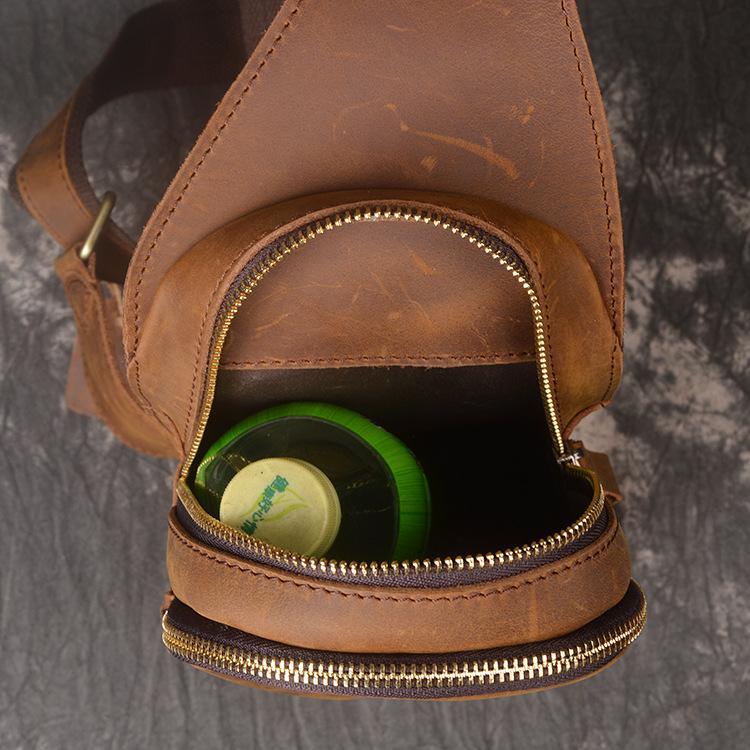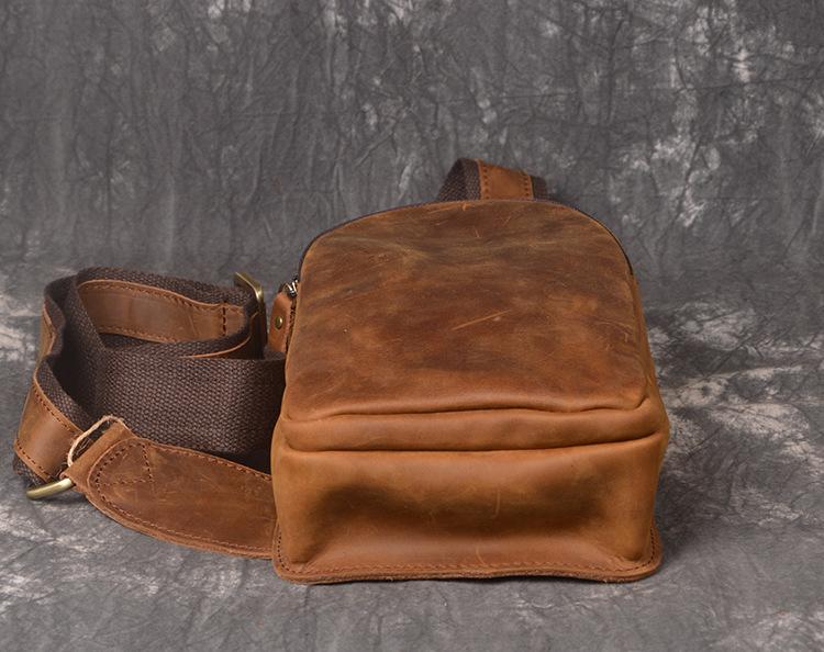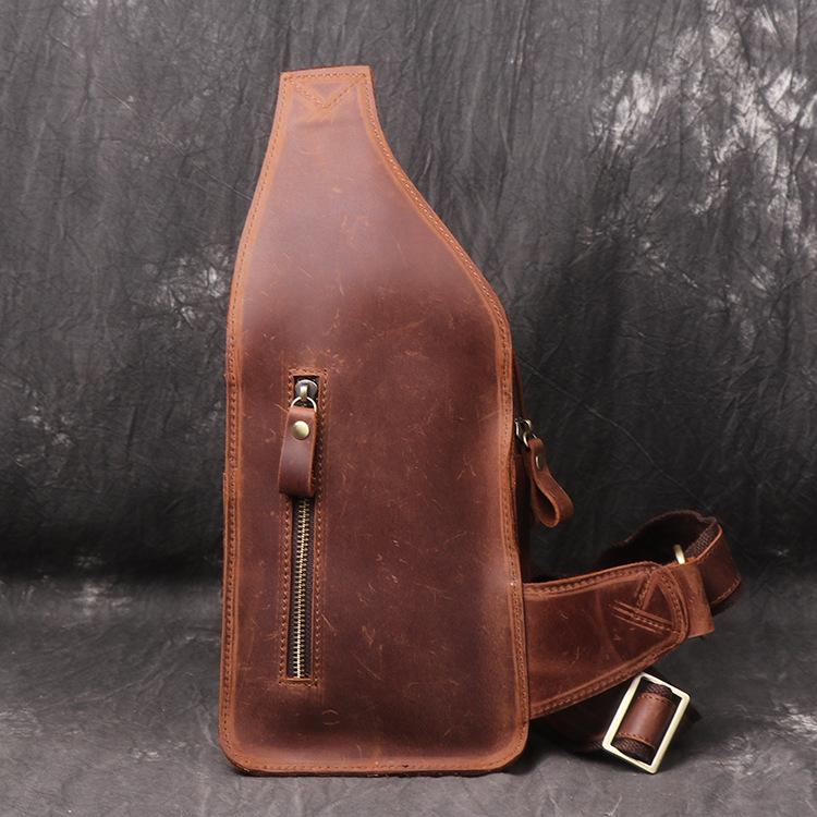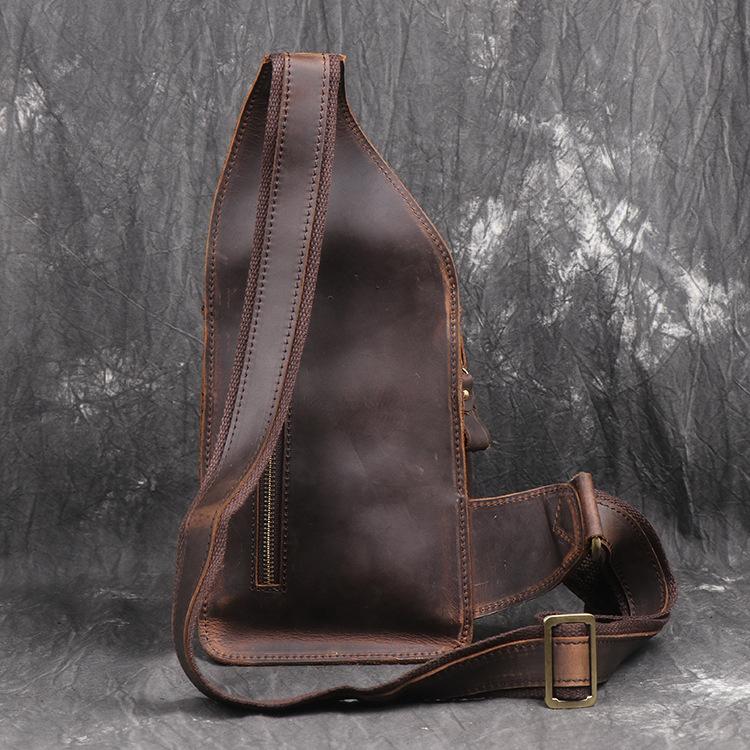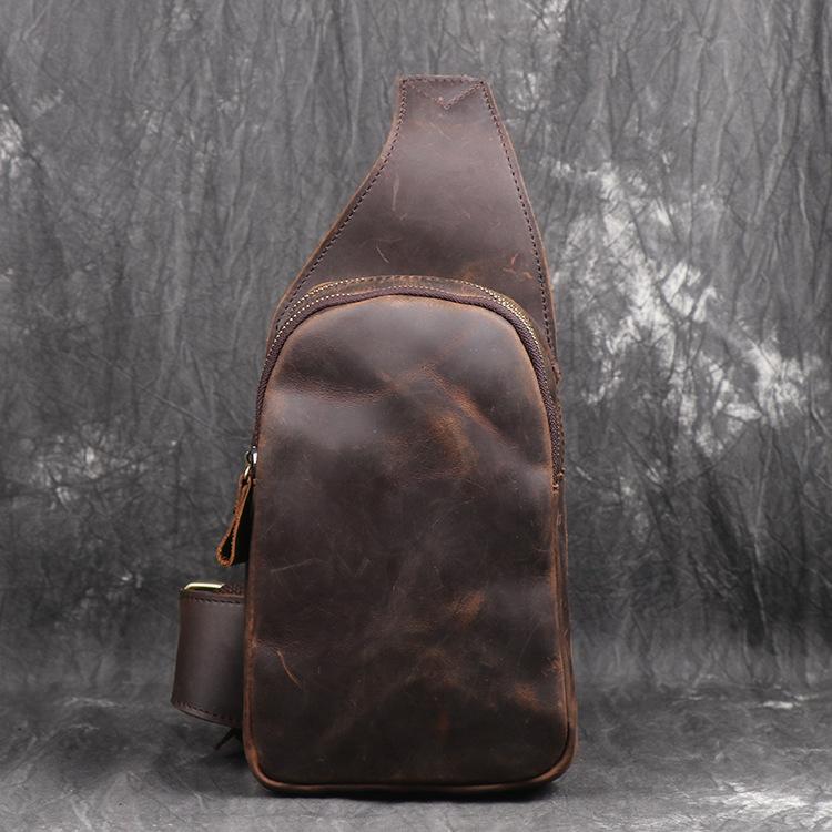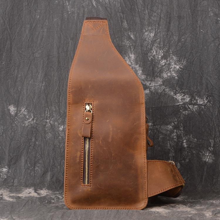 Style: Vintage Brown Leather Men's Chest Bag One Shoulder Backpack Sling Bag For Men