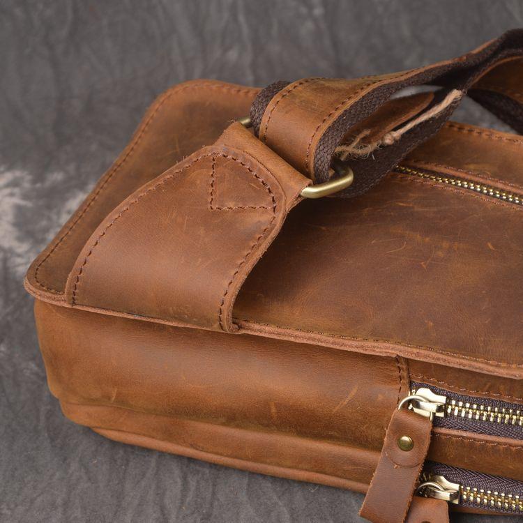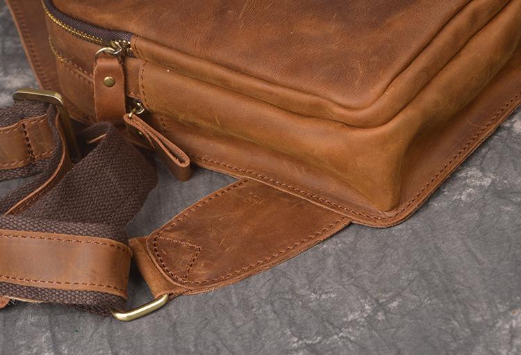 Design: Vintage Brown Leather Men's Chest Bag One Shoulder Backpack Sling Bag For Men