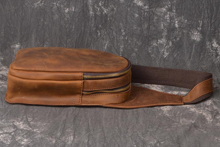 Vintage Brown Leather Men's Chest Bag One Shoulder Backpack Sling Bag For Men