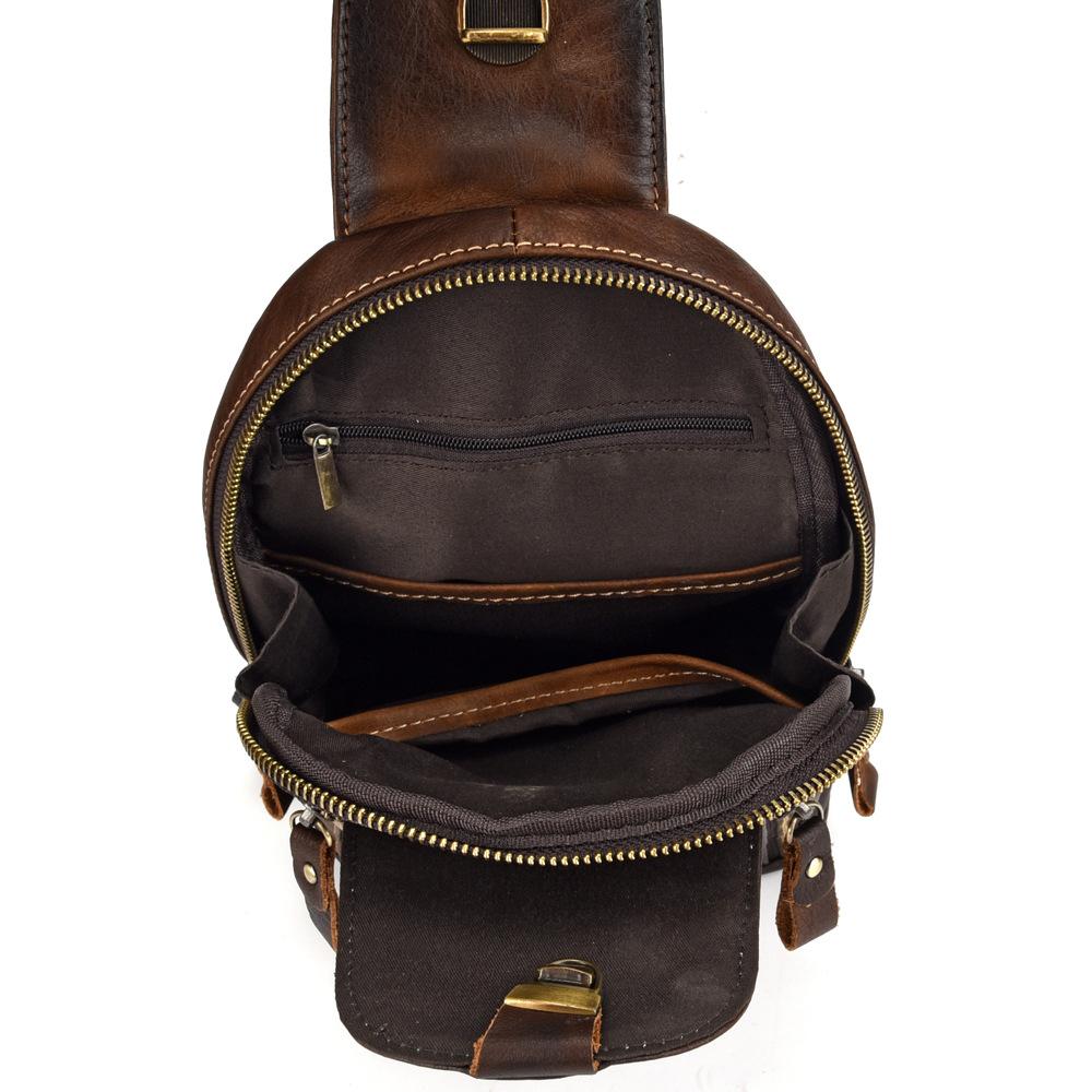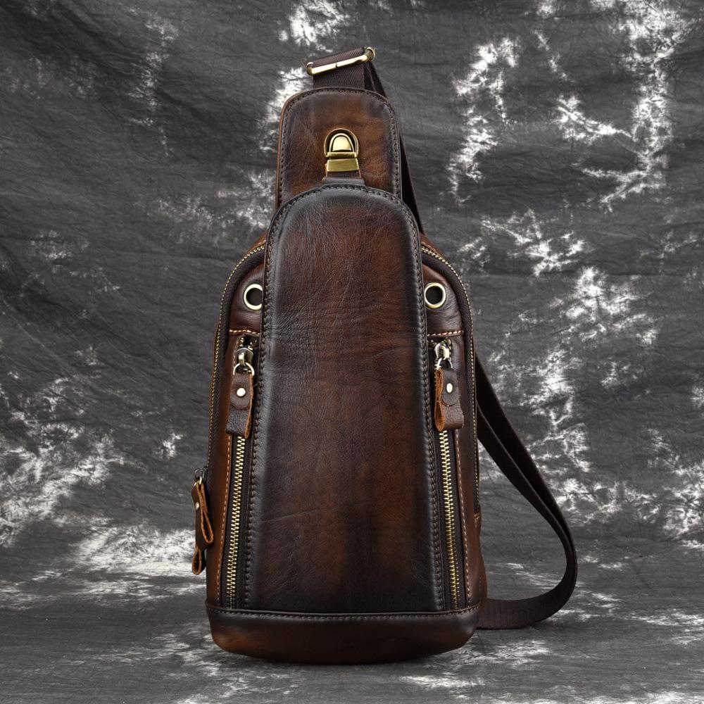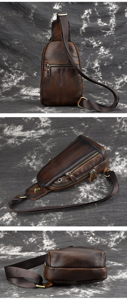 Design: Vintage Tan Leather Men's Chest Bag One Shoulder Backpack Sling Bag For Men