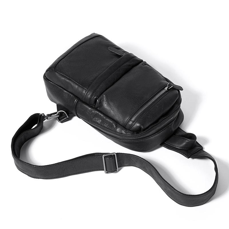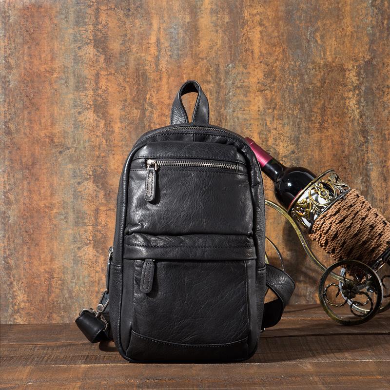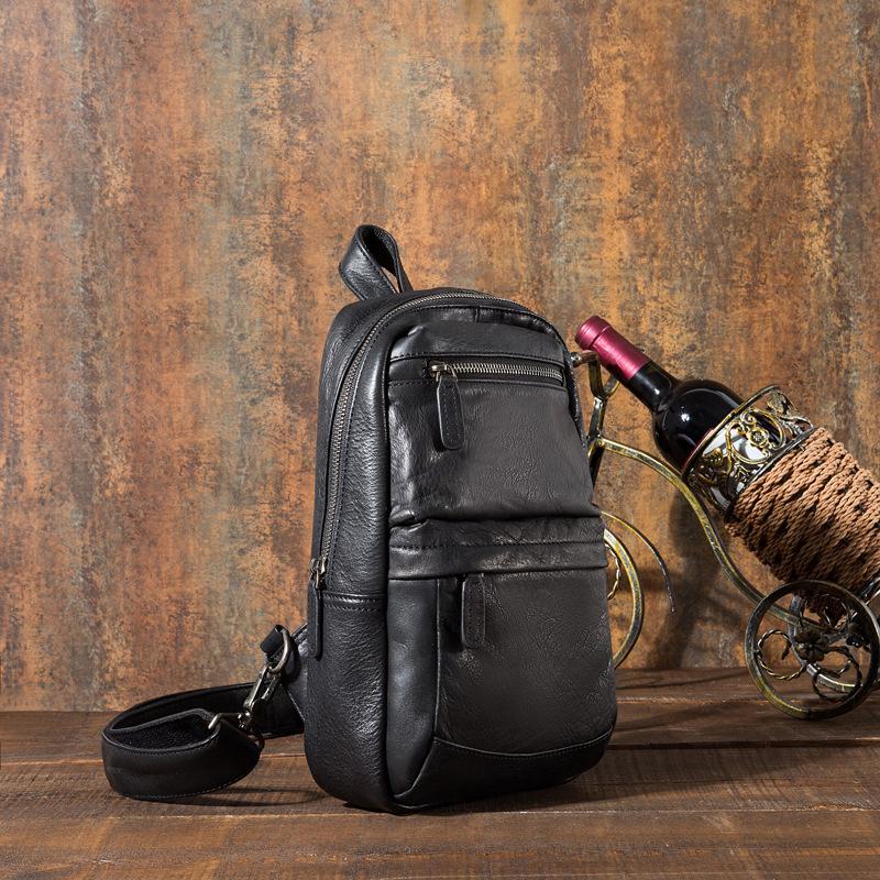 Design: Cool Black Mens Leather One Shoulder Backpack Sling Bag Sling Crossbody Bag for Men