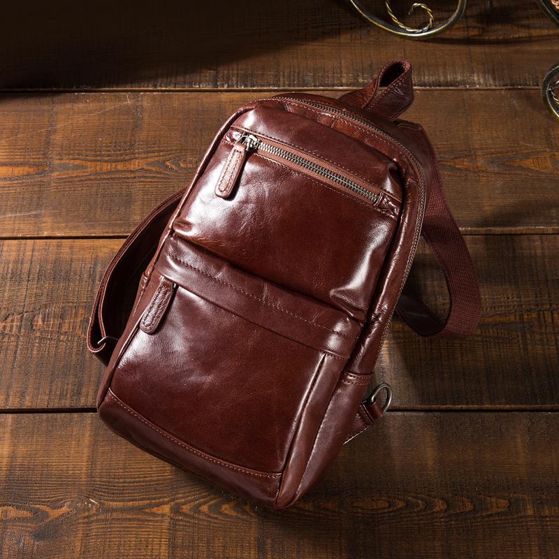 Design: Cool Black Mens Leather One Shoulder Backpack Sling Bag Sling Crossbody Bag for MenOverview: