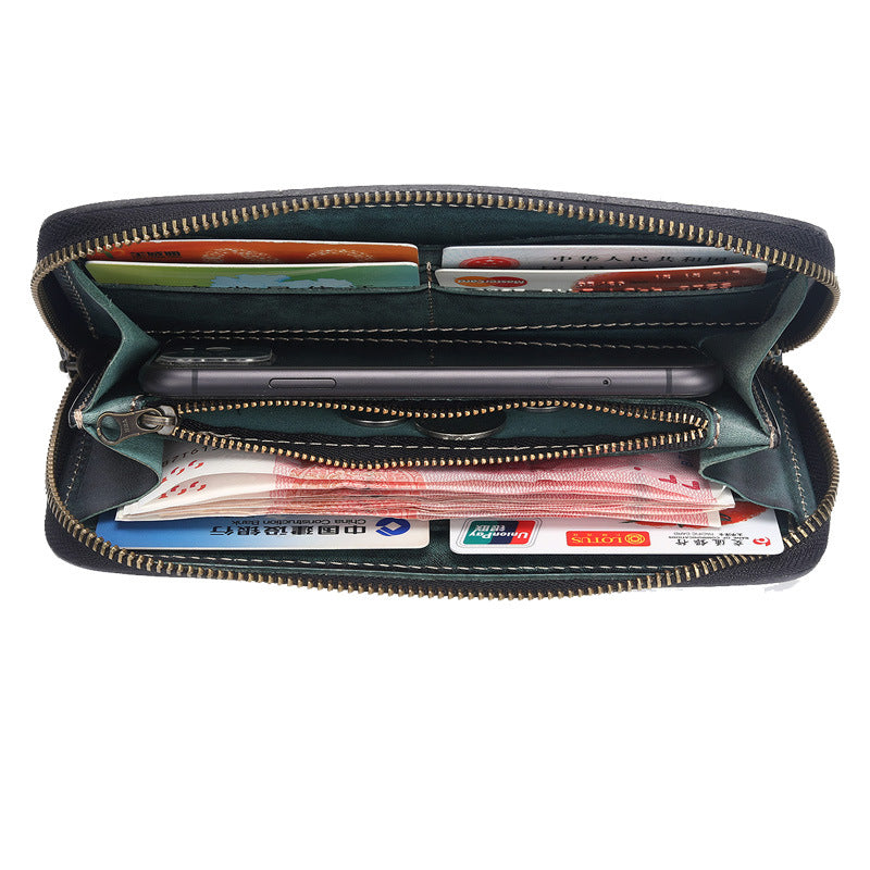 Design: Around Zip Leather Long Wallet Mens Minimalist Zipper Clutch Wallet for Men