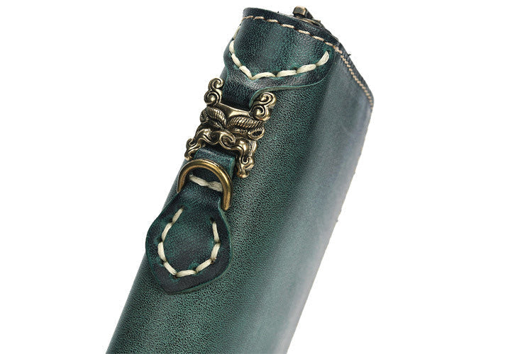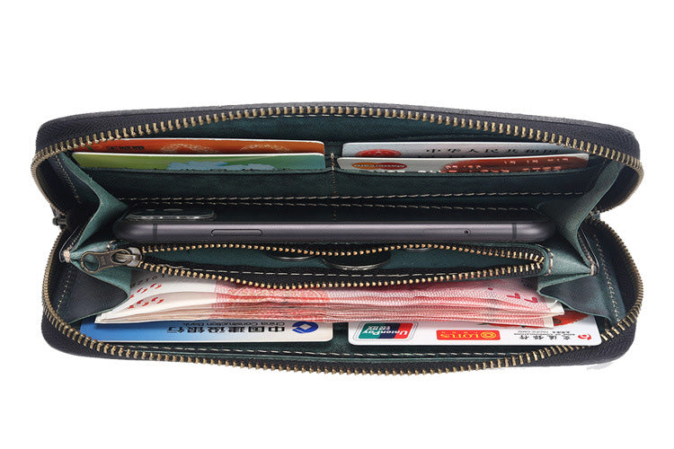 Around Zip Green Leather Biker Wallet Mens Minimalist Zipper Clutch Wallet for Men