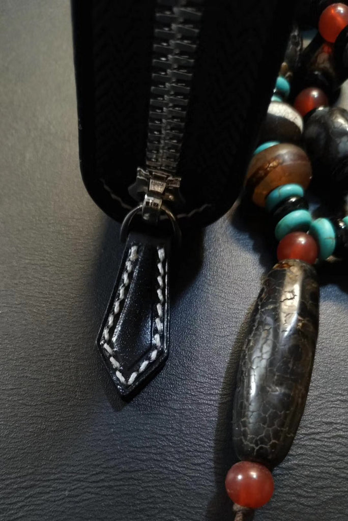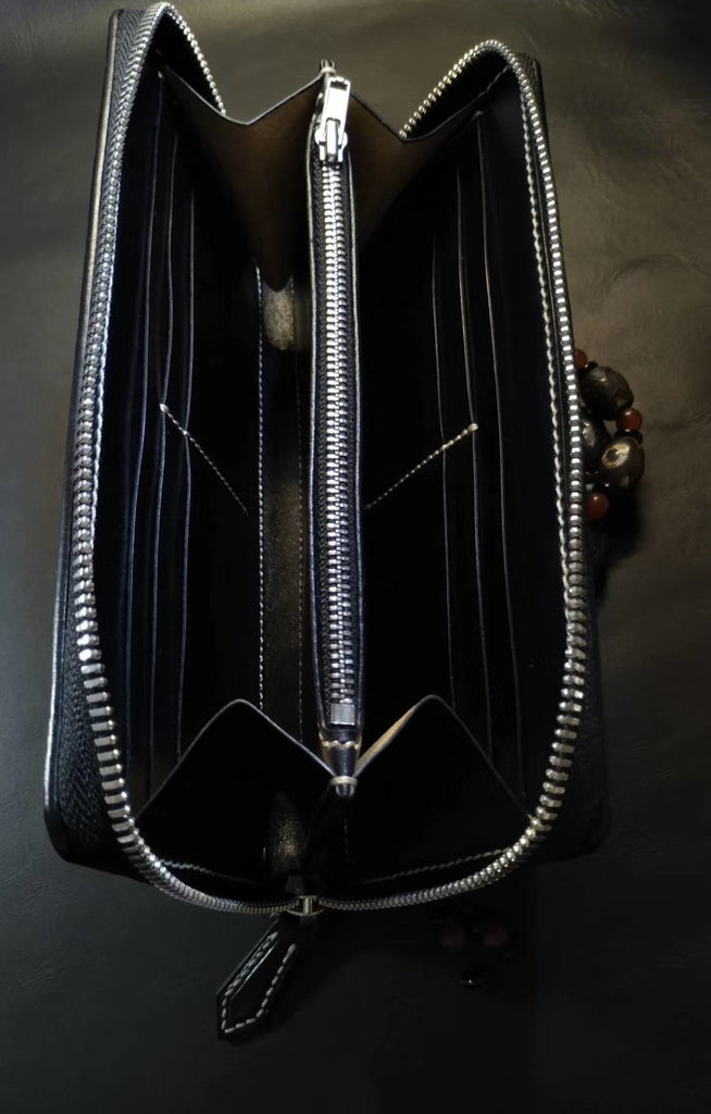 Style: Badass Black Leather Men's Dragon Head Biker Wallet Handmade Tooled Zipper Long Wallets For Men