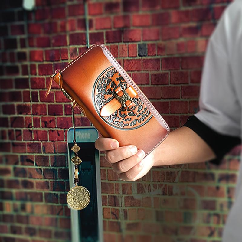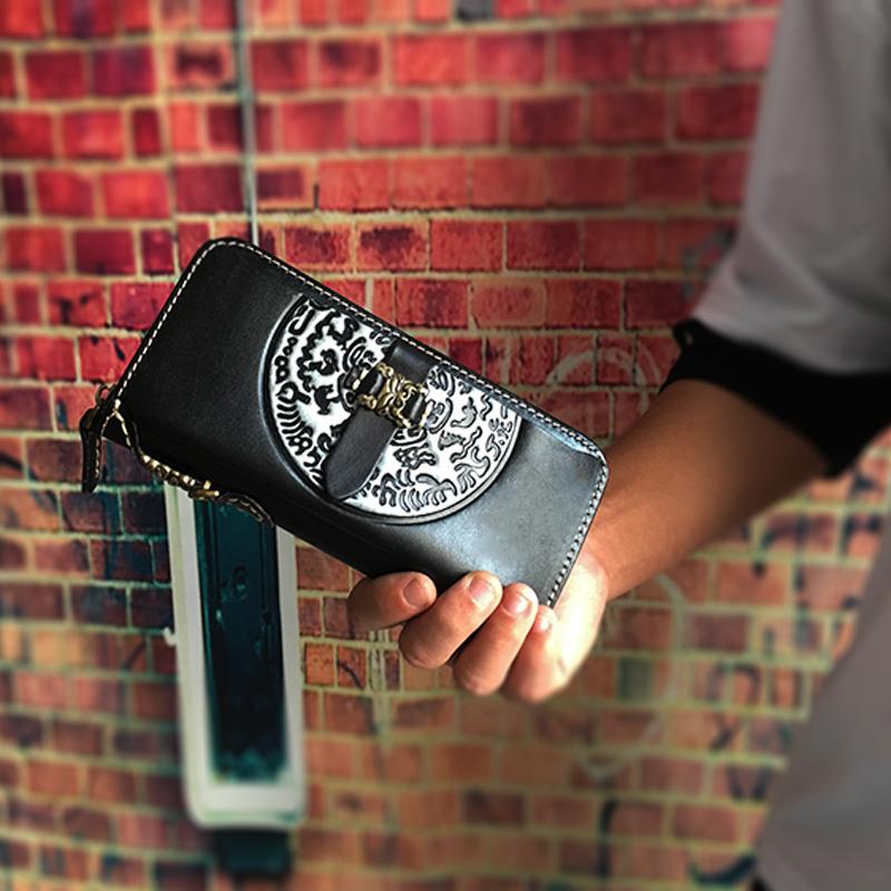 Design: Black Handmade Leather Fashion Brown Long Wallet Clutch Wallet For Men