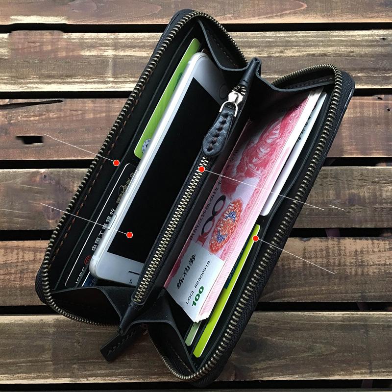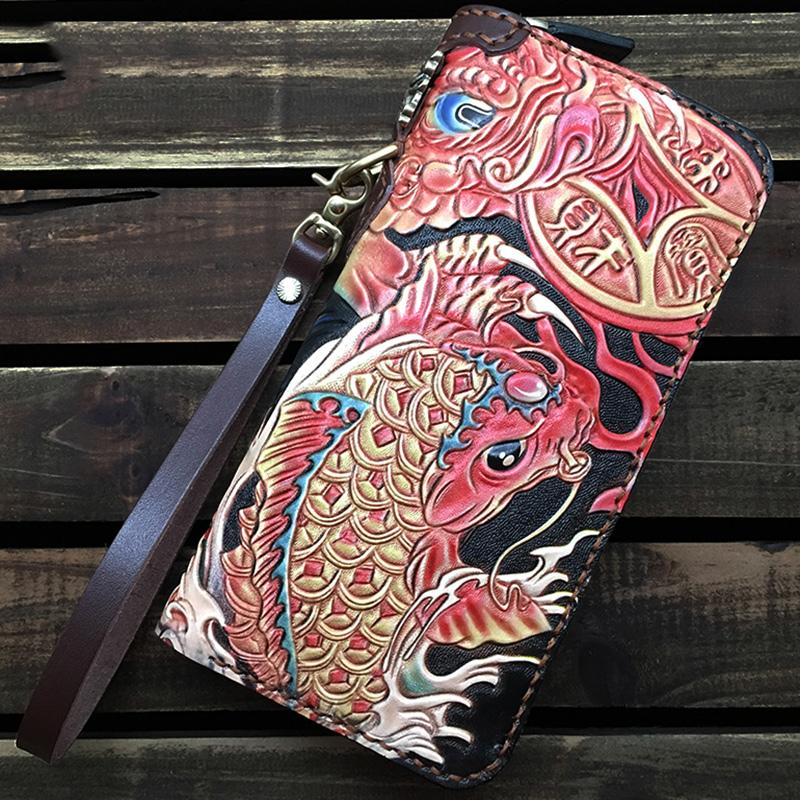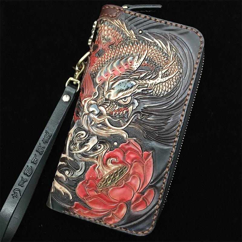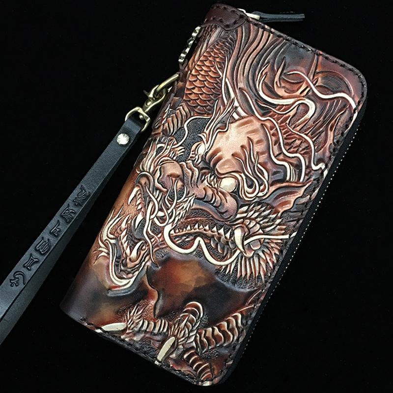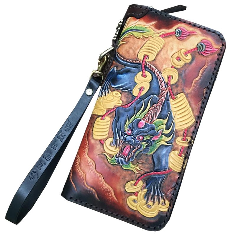 Style: Black Handmade Tooled Brave troops Leather Long Biker Wallet Chain Wallet Clutch Wallet For Men