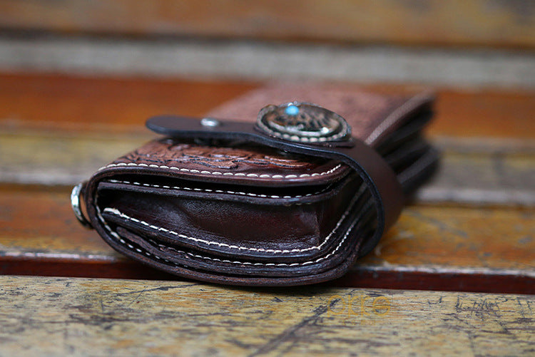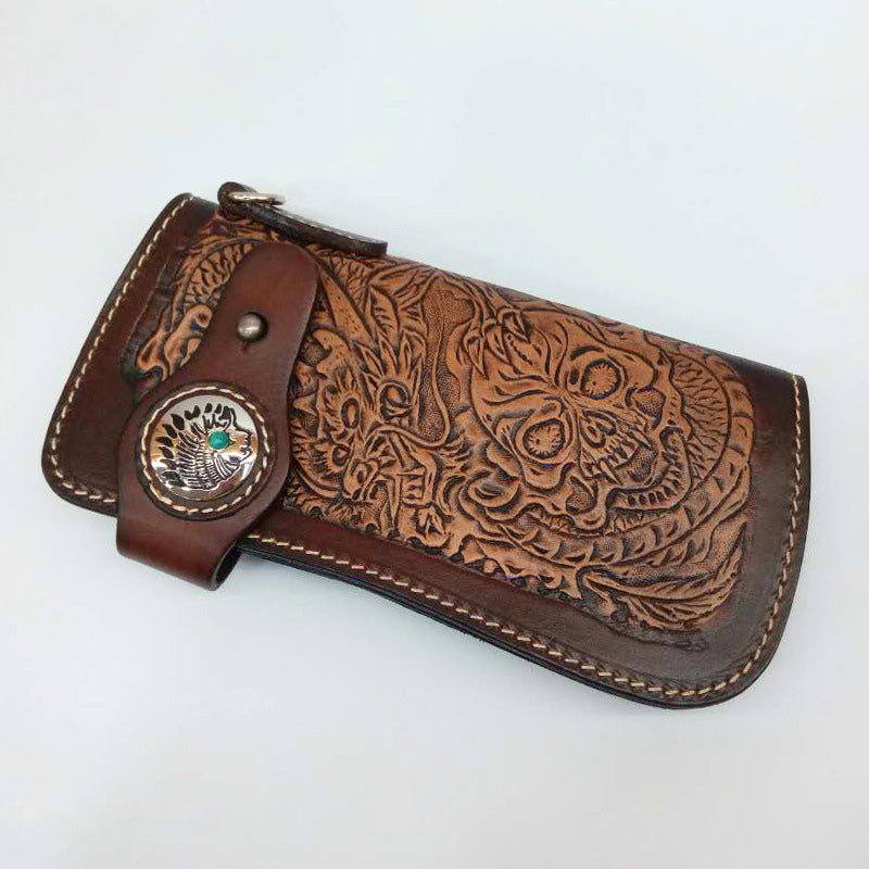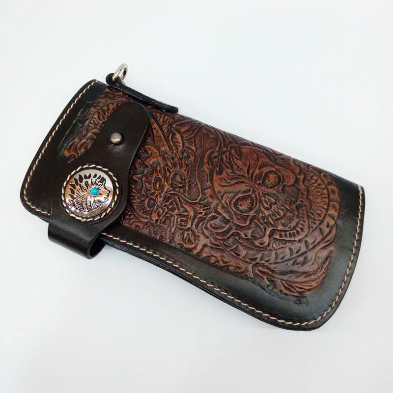 Style: Cool Leather Tooled Dragon&Skull Biker Wallet Handmade Biker Chain Wallet for Men
