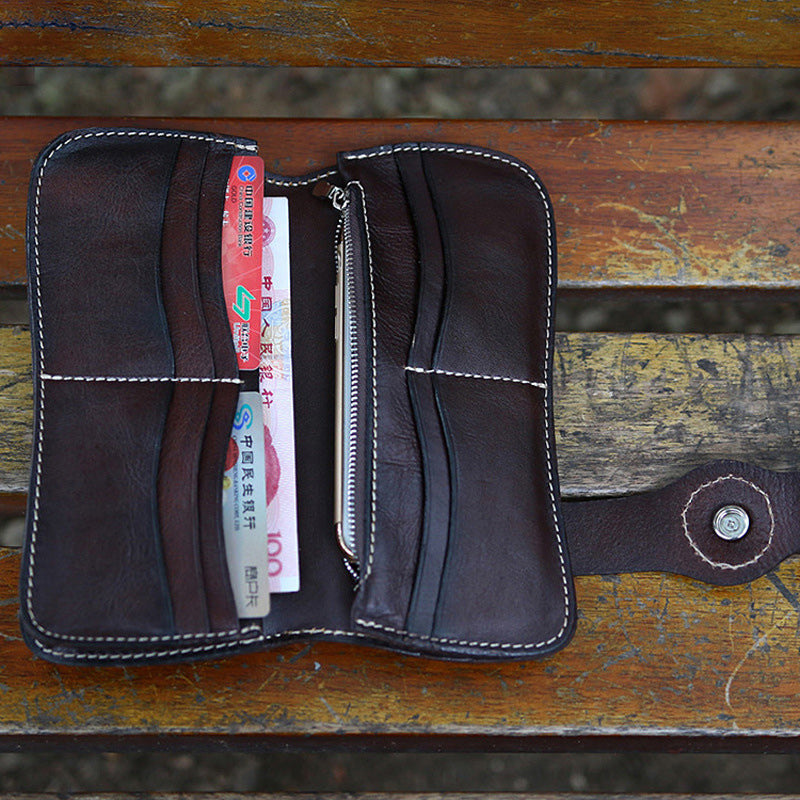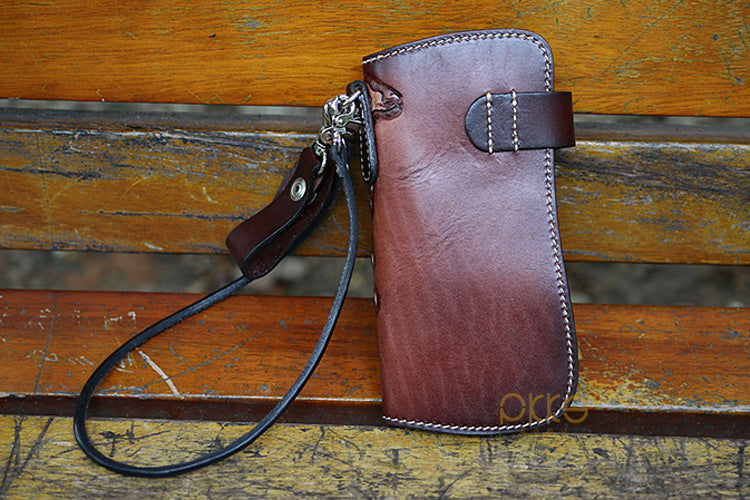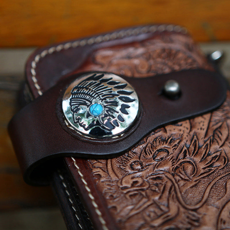 Design: Cool Leather Tooled Dragon&Skull Biker Wallet Handmade Biker Chain Wallet for Men