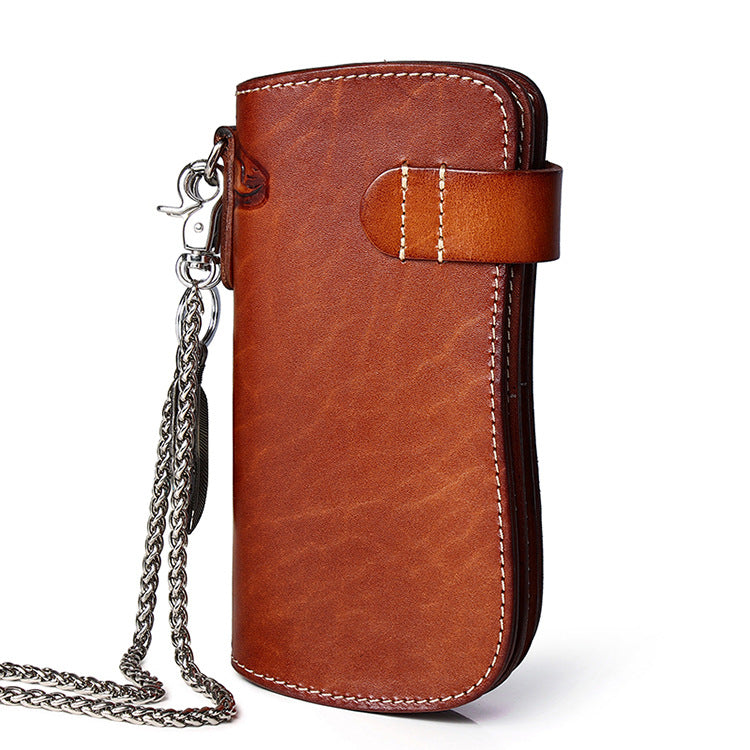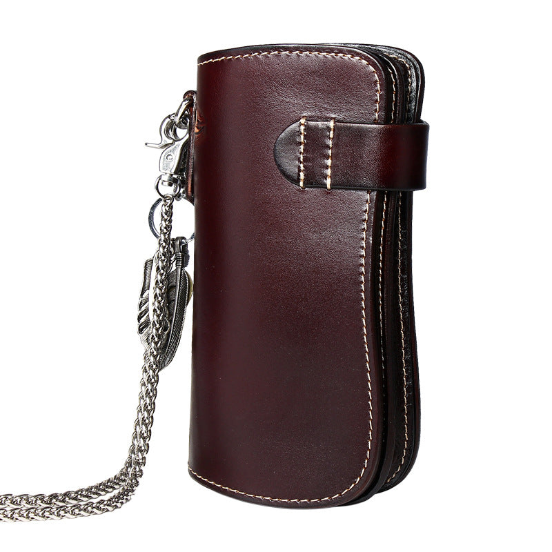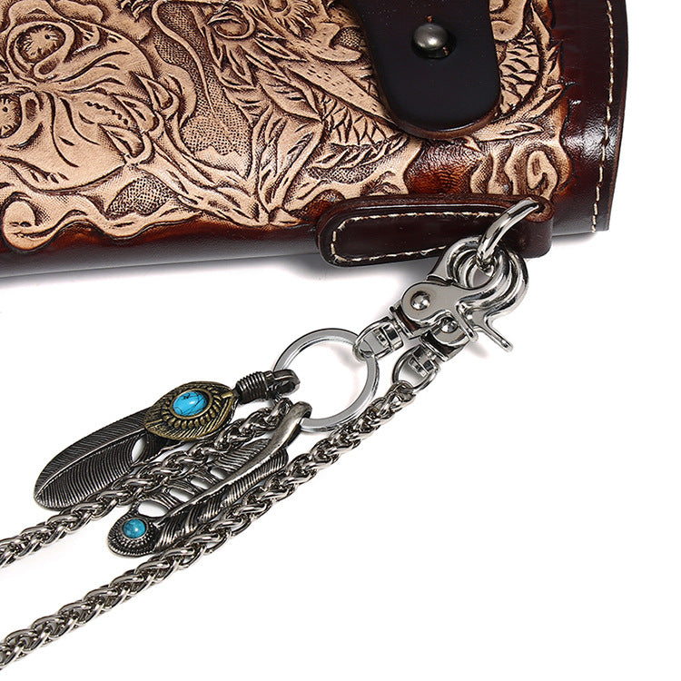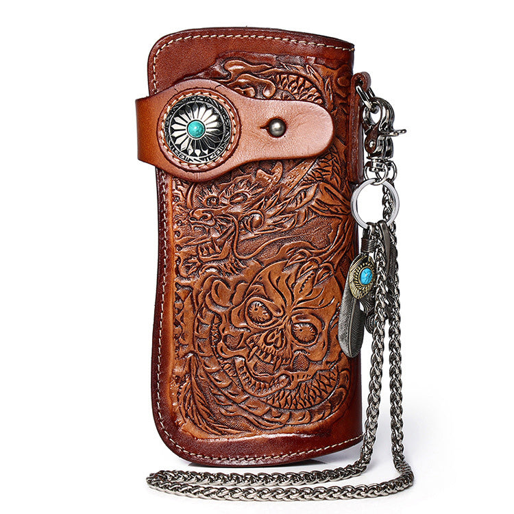Style: Cool Leather Tooled Dragon&Skull Biker Wallet Handmade Biker Chain Wallet for Men