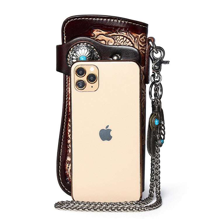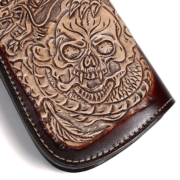 Design: Cool Leather Tooled Dragon&Skull Biker Wallet Handmade Biker Chain Wallet for Men