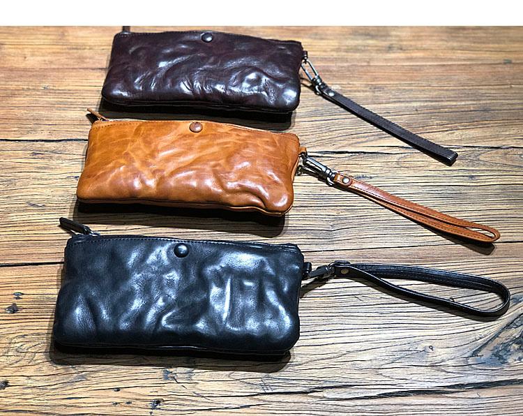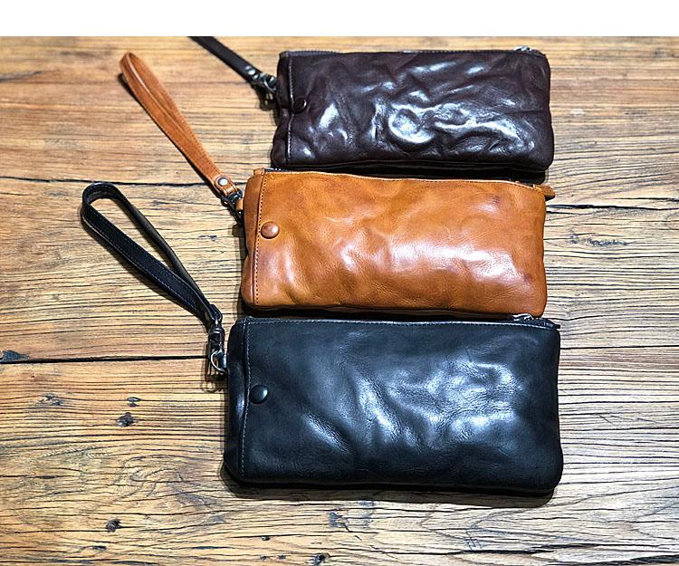 Design: Fashion Black Leather Mens Long Wallet Brown Wristlet Wallet Phone Wallet Clutch Men