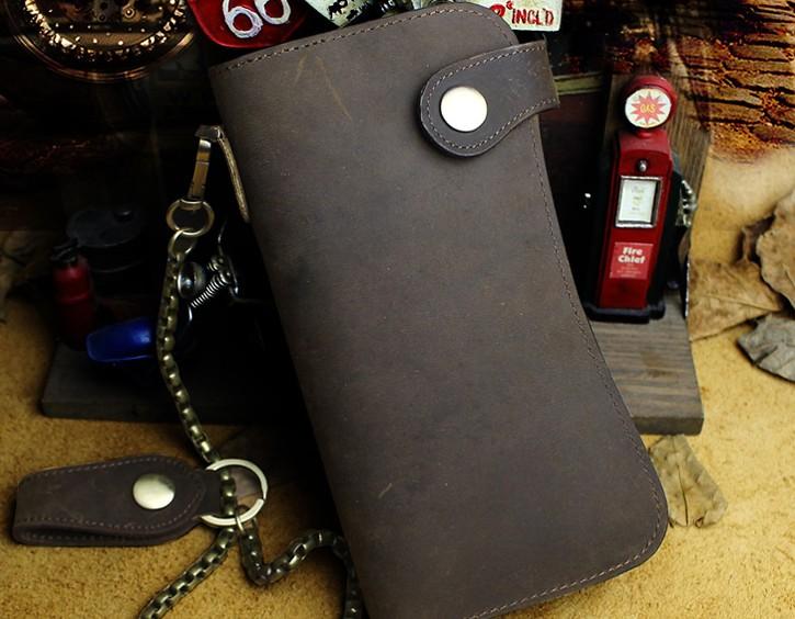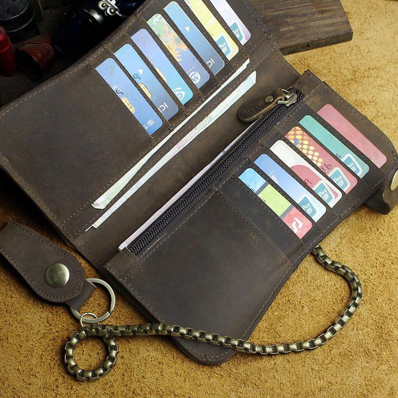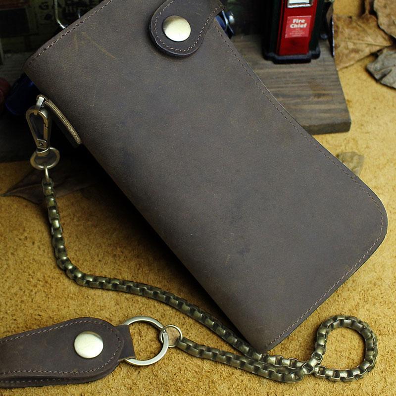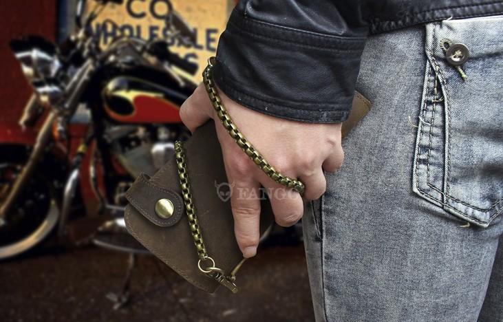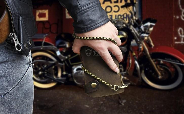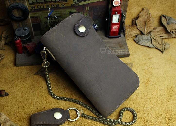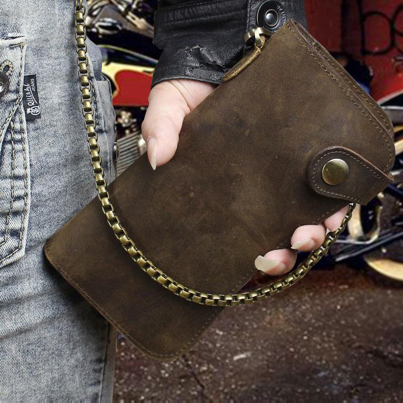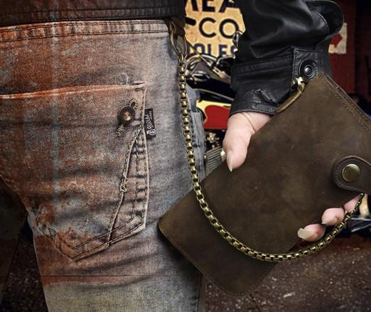 Style: Handmade Leather Biker Wallet Tooled Floral Mens Cool Chain Wallet Trucker Wallet with Chain