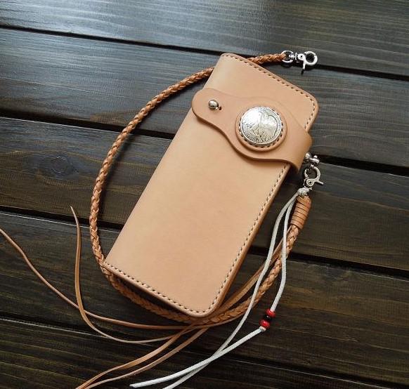 Design: Handmade Leather Biker Wallet Mens Cool Chain Wallet Trucker Wallet with Chain