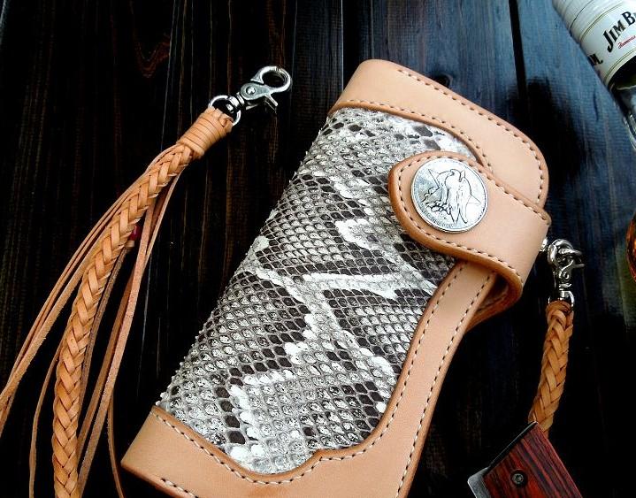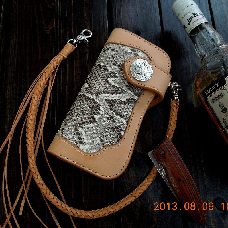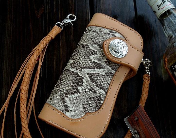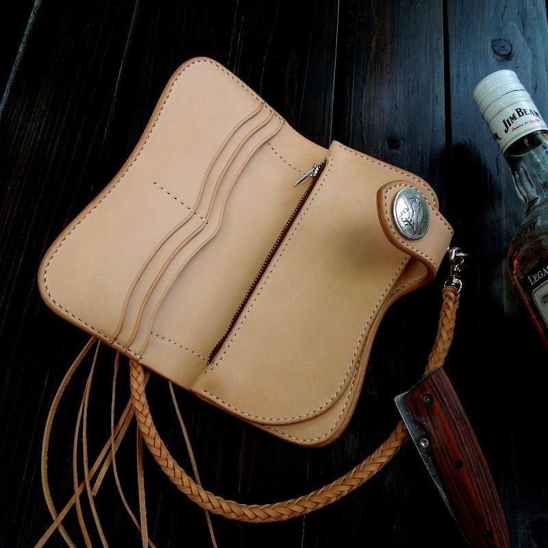 Design: Handmade Leather Biker Wallet Mens Cool Chain Wallet Trucker Wallet with Chain