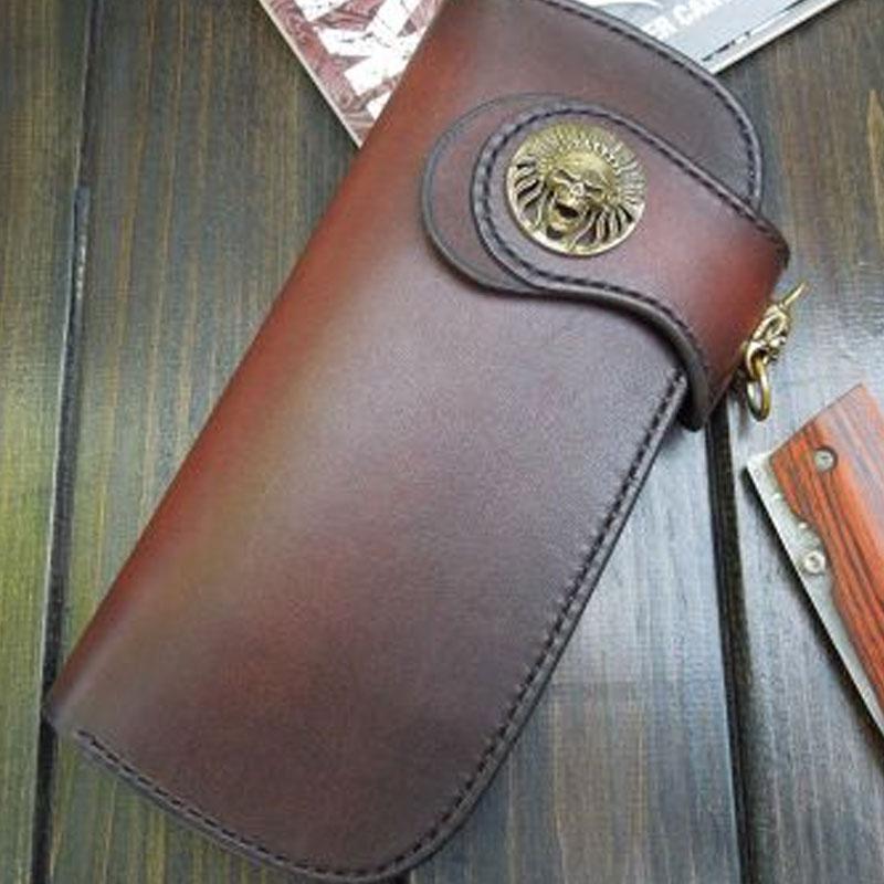 Style: Handmade Leather Biker Wallet Mens Cool Chain Wallet Trucker Wallet with Chain