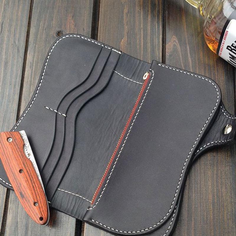 Handmade Leather Biker Wallet Mens Cool Chain Wallet Trucker Wallet with Chain
