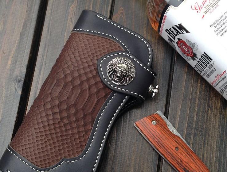 Design: Handmade Leather Biker Wallet Mens Cool Chain Wallet Trucker Wallet with Chain