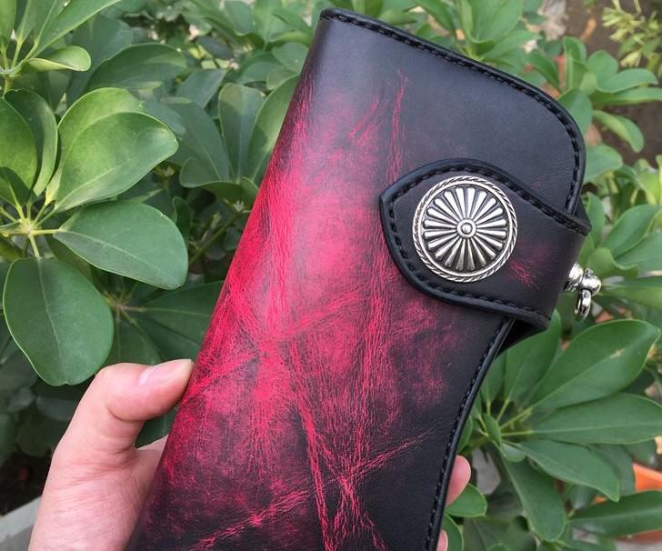 Design: Handmade Leather Biker Wallet Mens Cool Chain Wallet Trucker Wallet with Chain