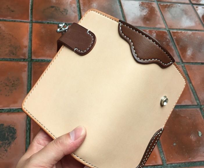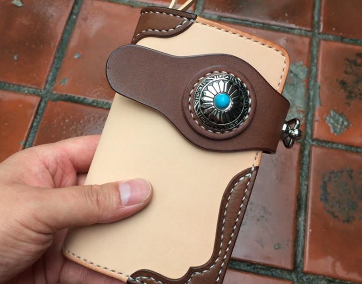 Design: Handmade Leather Biker Short Wallet Mens Cool Chain Wallet Trucker Wallet with Chain