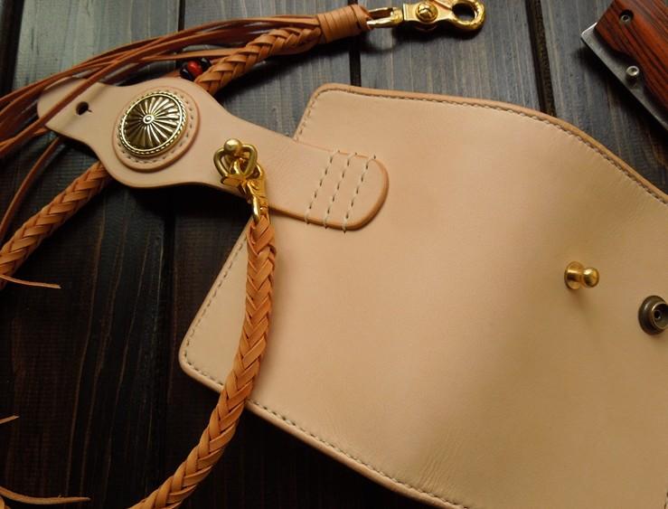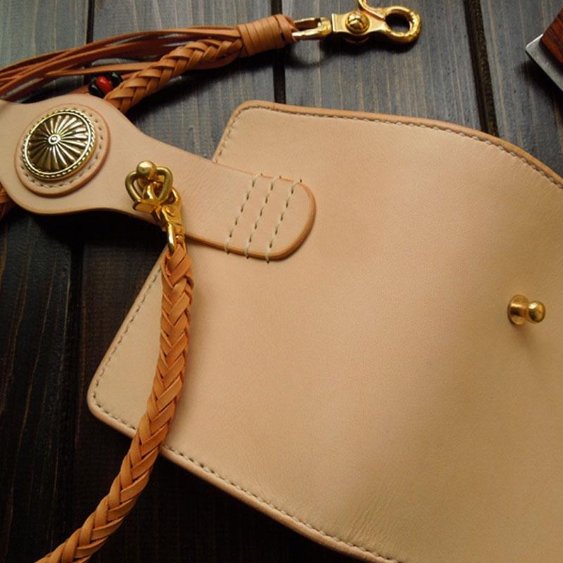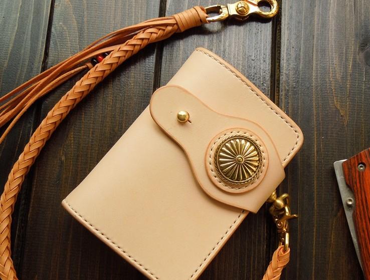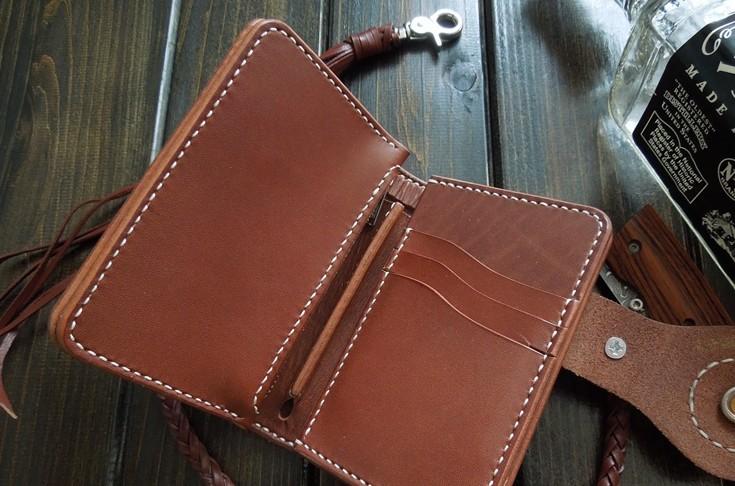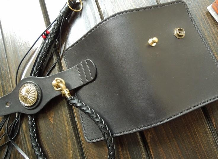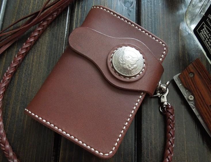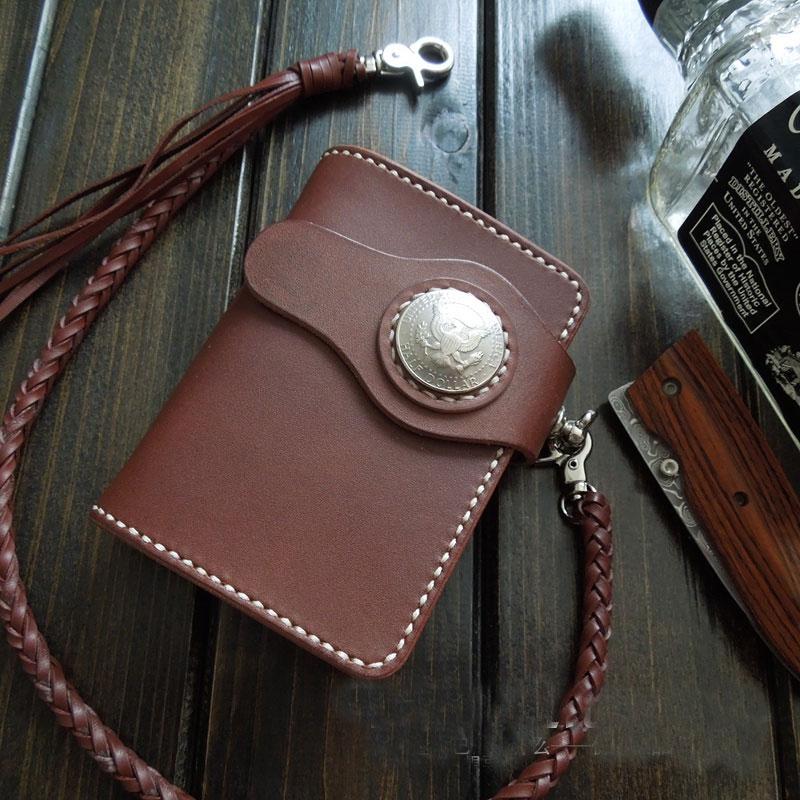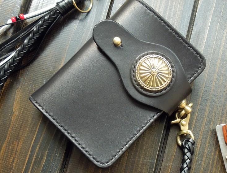 Design: Handmade Leather Biker Short Wallet Mens Cool Chain Wallet Trucker Wallet with Chain