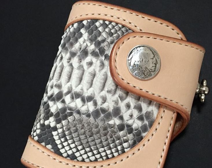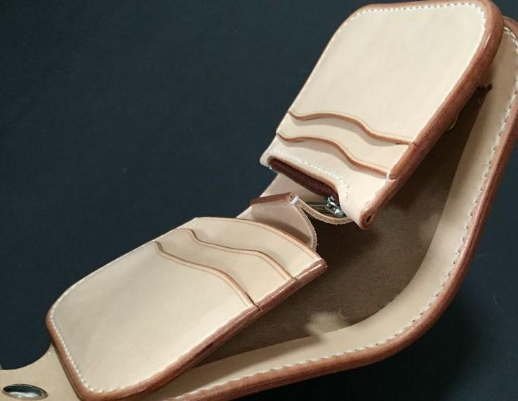 Design: Handmade Leather Biker Short Wallet Mens Cool Chain Wallet Trucker Wallet with Chain
