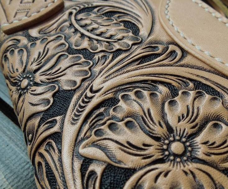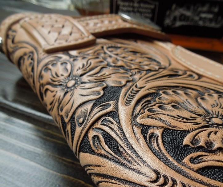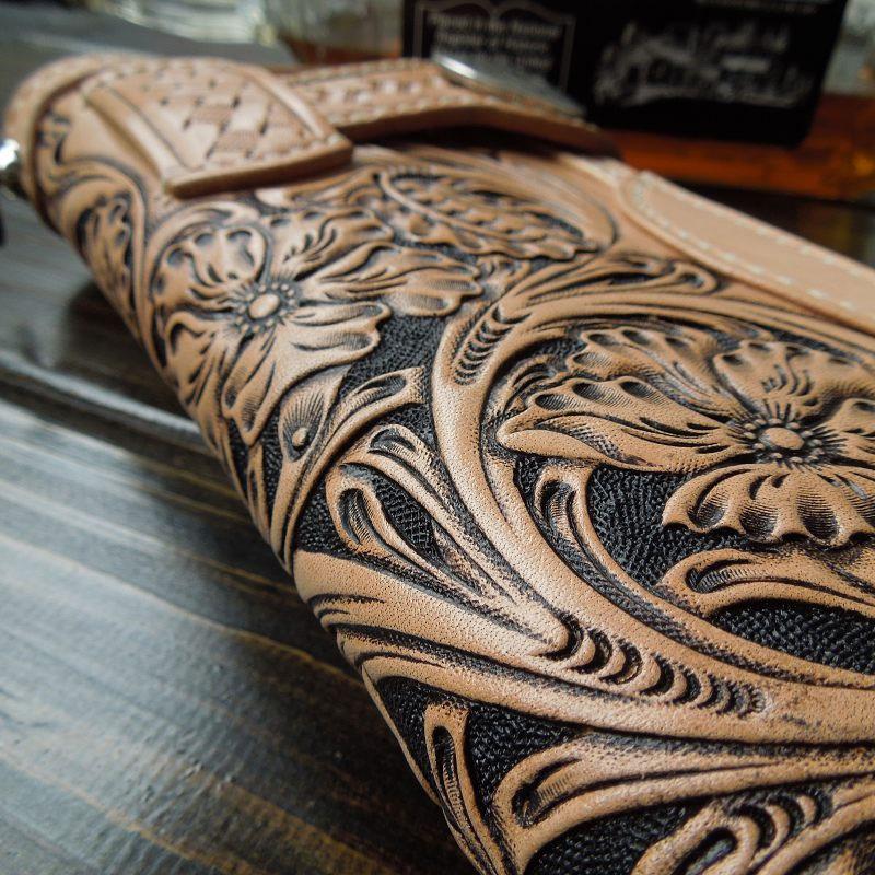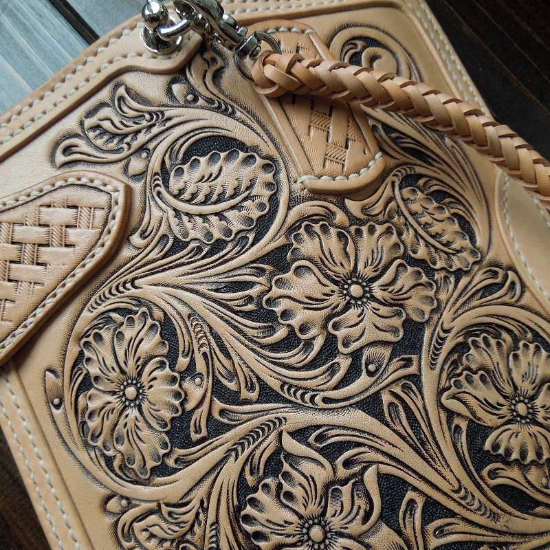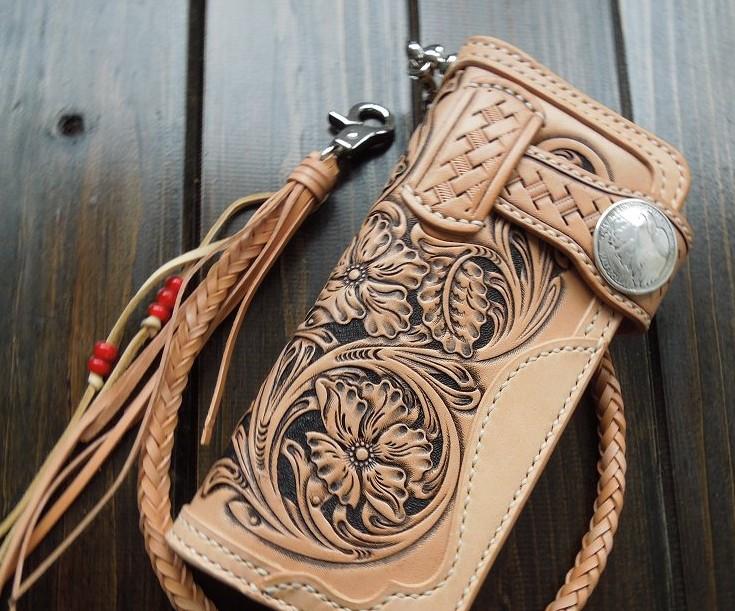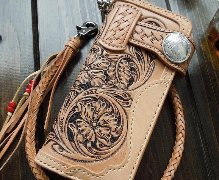 Style: Handmade Leather Biker Wallet Tooled Floral Mens Cool Chain Wallet Trucker Wallet with Chain