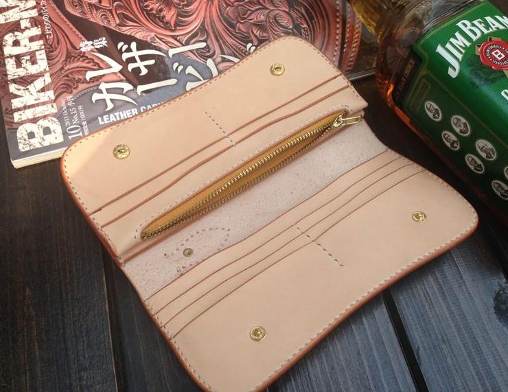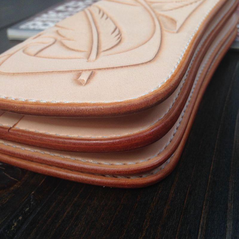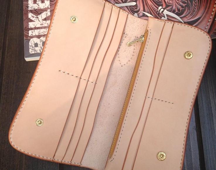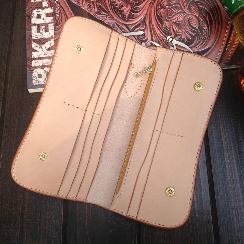 Style: Handmade Leather Biker Wallet Tooled Floral Mens Cool Chain Wallet Trucker Wallet with Chain