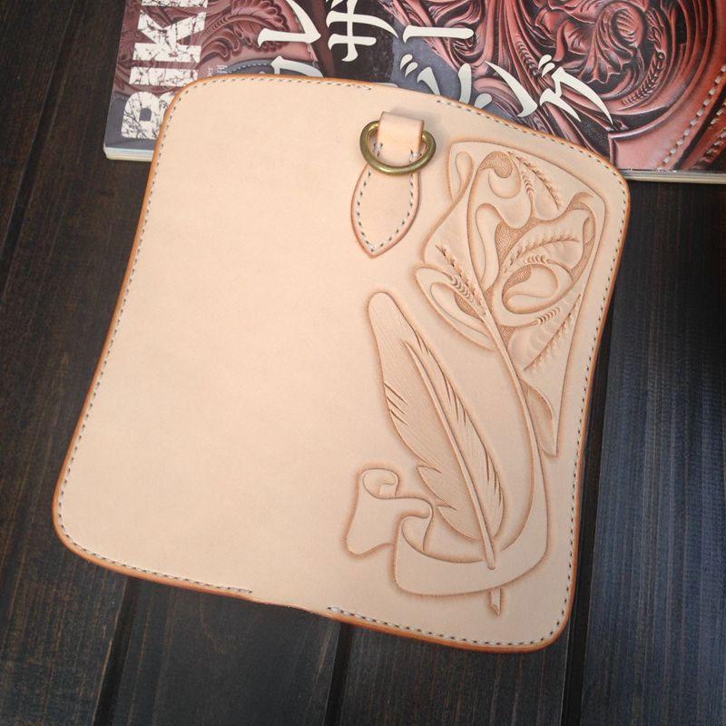 Design: Handmade Leather Biker Wallet Tooled Floral Mens Cool Chain Wallet Trucker Wallet with Chain
