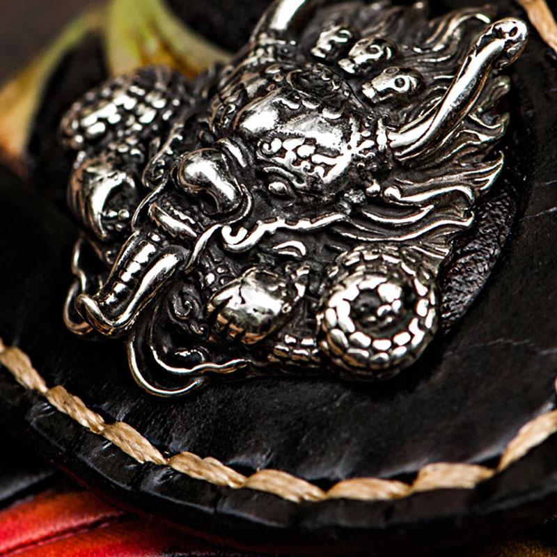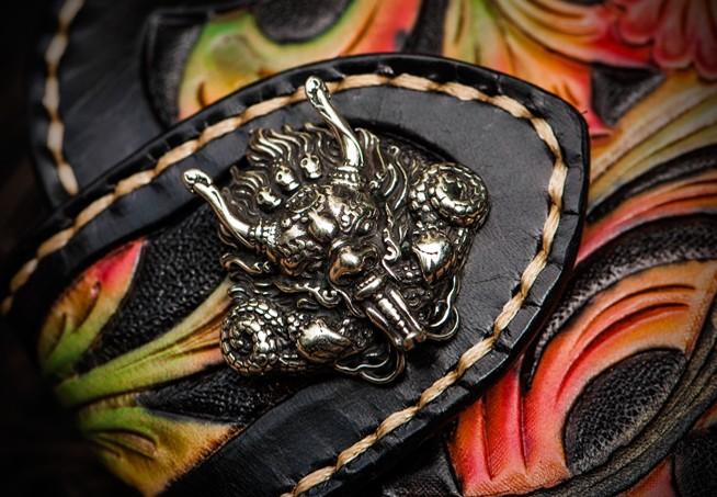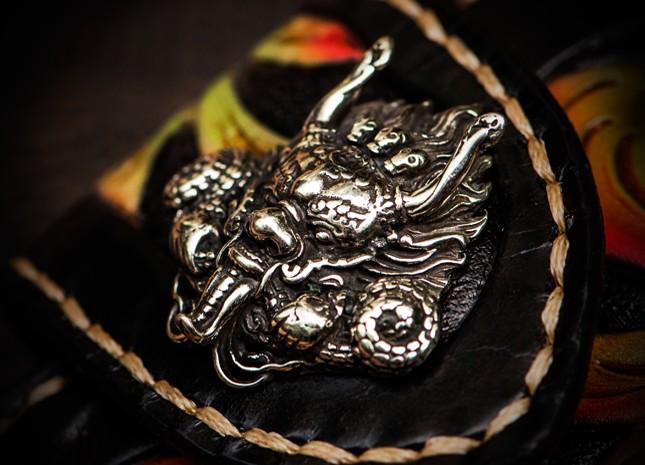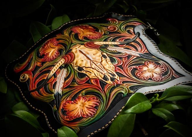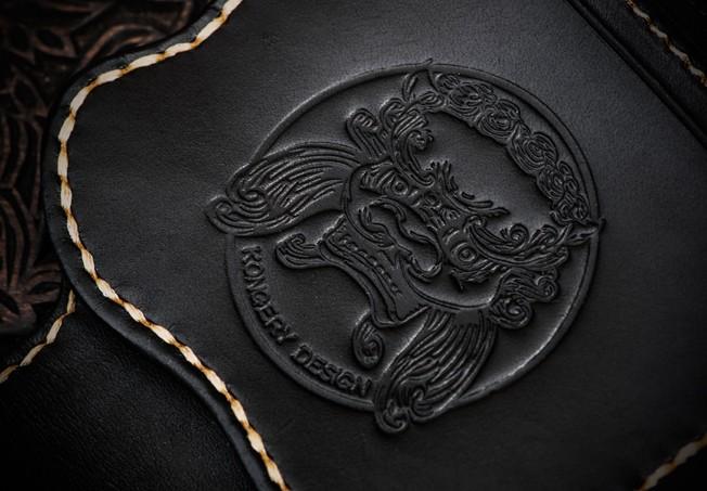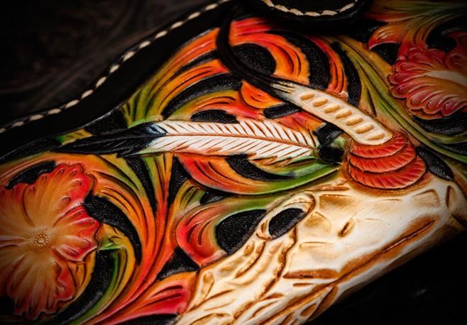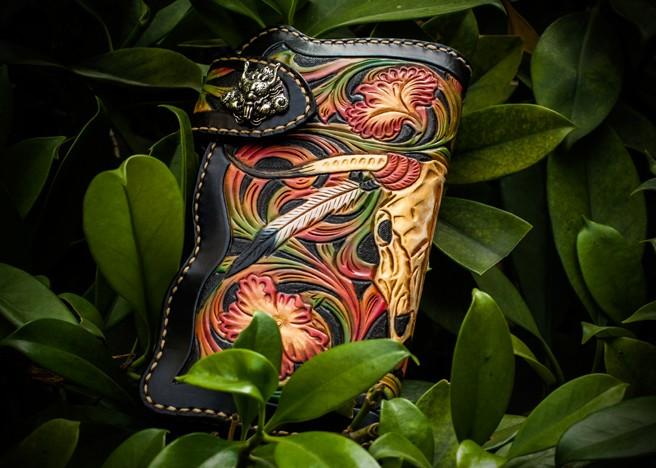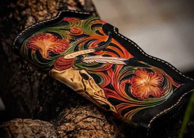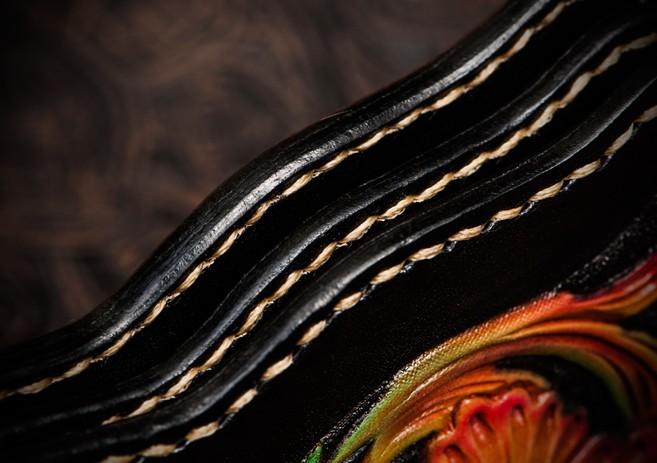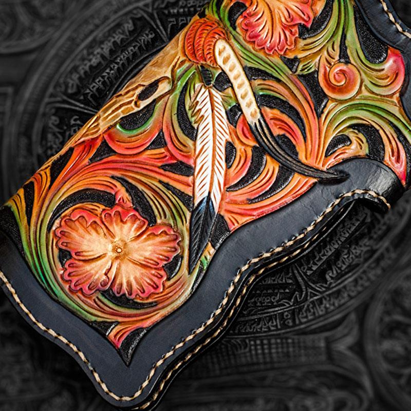 Design: Handmade Leather Black Mens Tooled Skull Chain Biker Wallet Cool Leather Wallet Long Clutch Wallets for Men