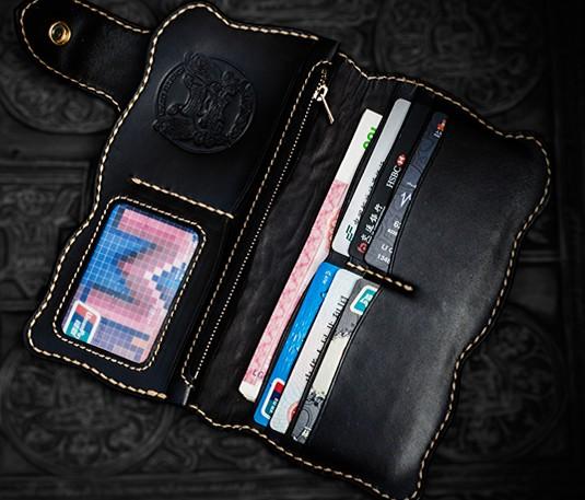 Handmade Leather Black Mens Tooled Skull Chain Biker Wallet Cool Leather Wallet Long Clutch Wallets for Men