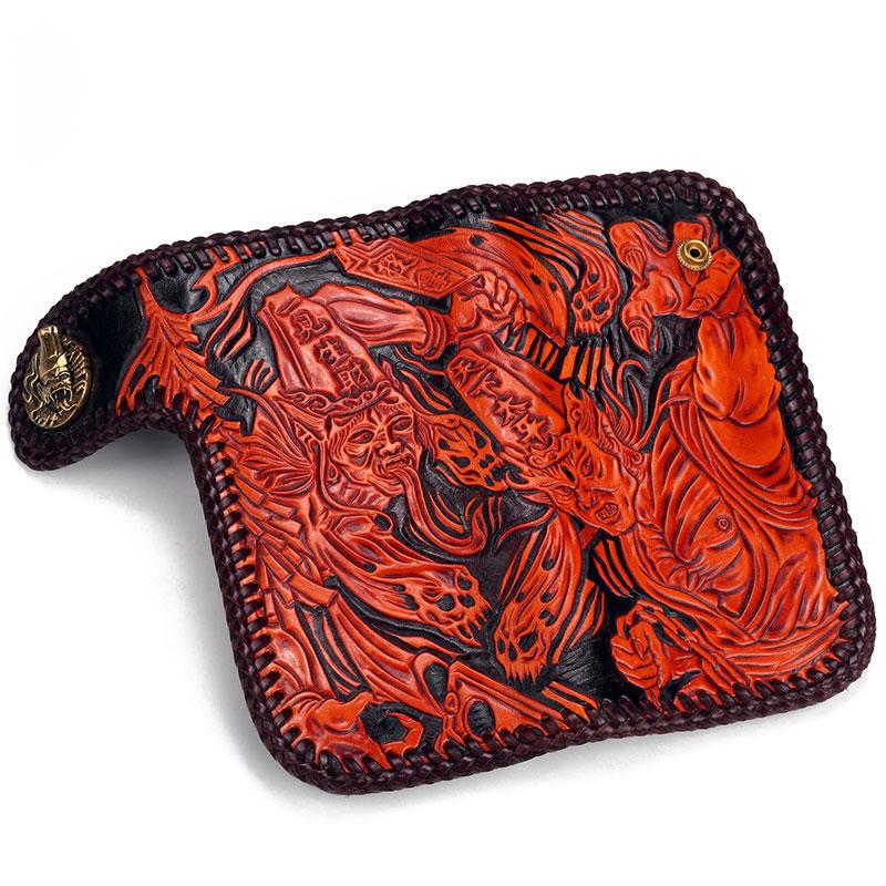 Design: Handmade Leather Black&White Mens Chain Biker Wallet Cool Leather Wallet With Chain Wallets for Men
