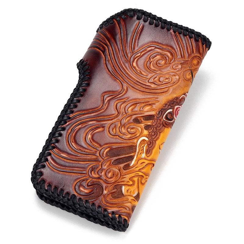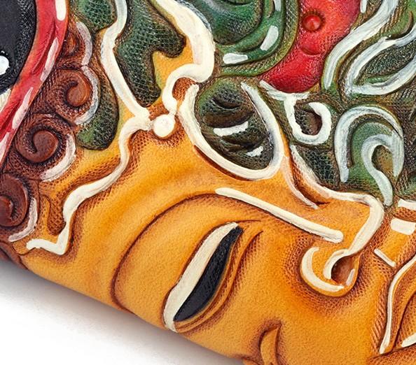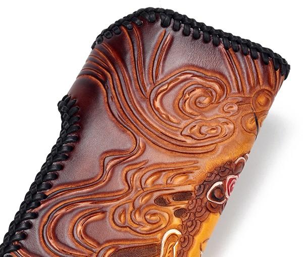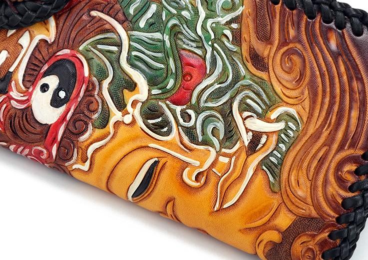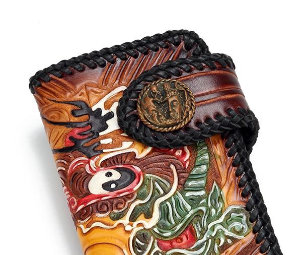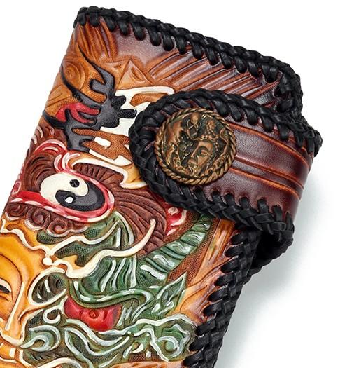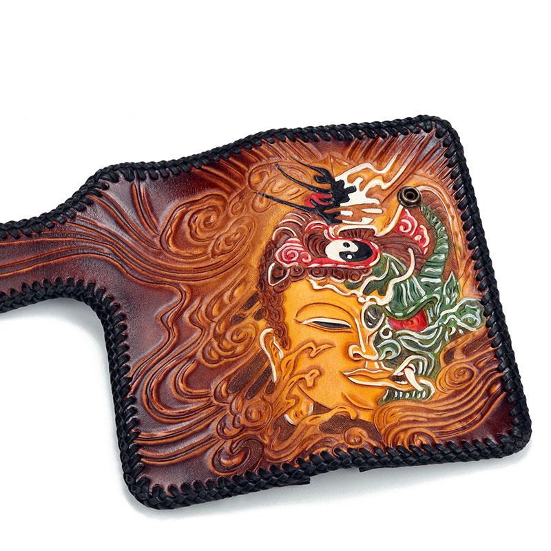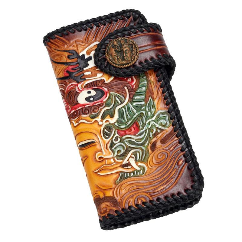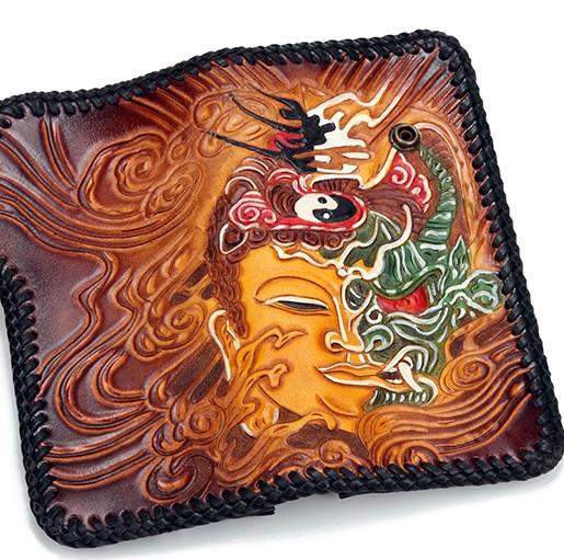 Design: Handmade Leather Buddha&Demon Mens Chain Biker Wallet Cool Leather Wallet With Chain Wallets for Men